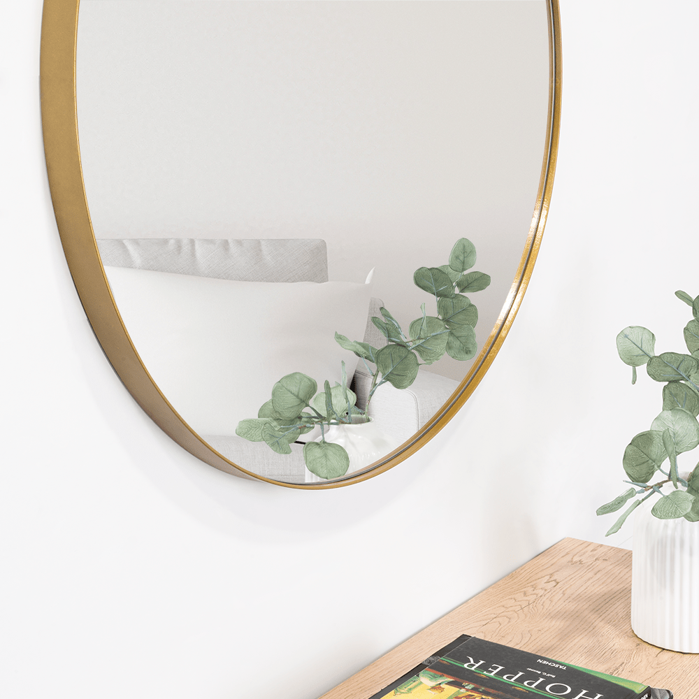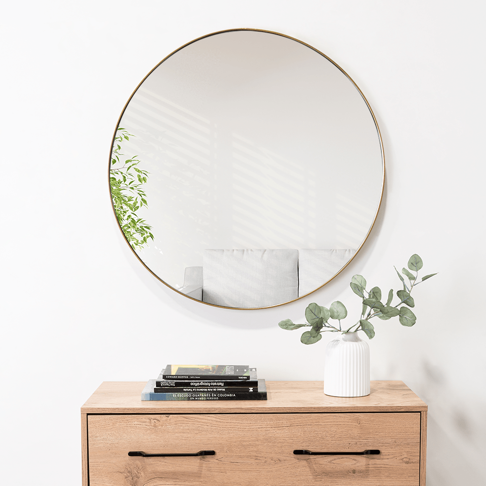 Espejo de Baño D80 Dorado 80x80cm Redondo con Marco Metálico
