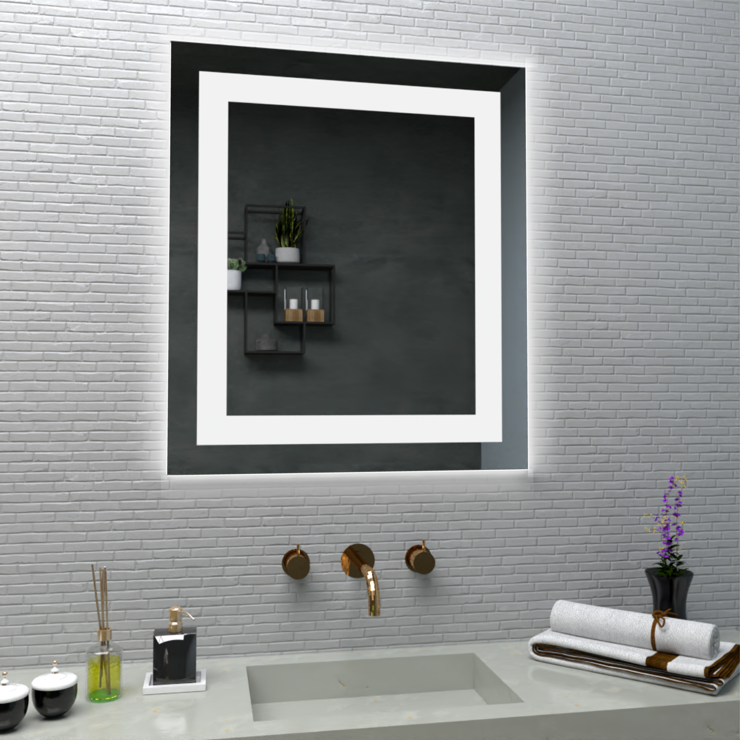 Espejo de Baño Torino Gris 65x75cm Rectangular con Sandblasting y con Iluminación Led