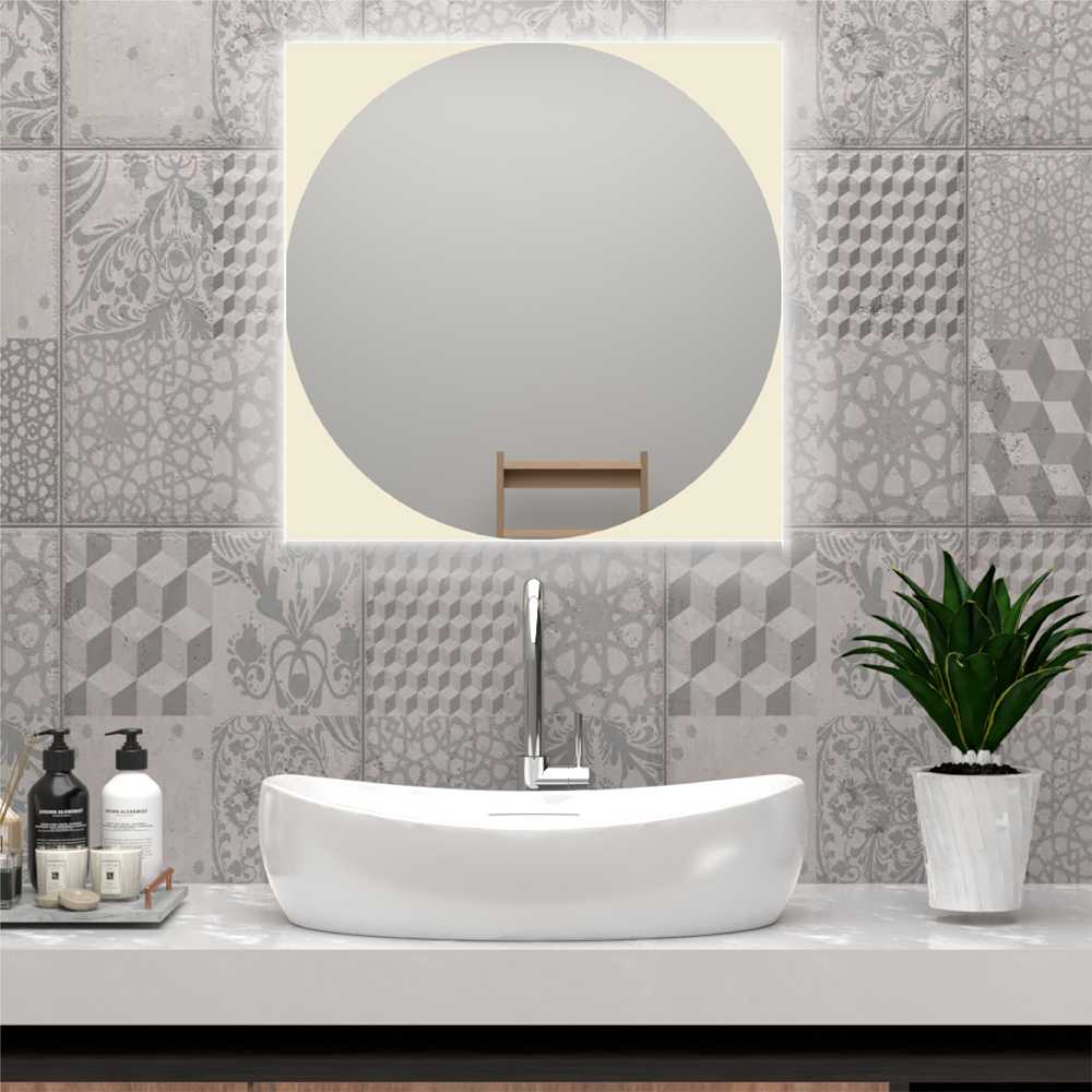 Espejo de Baño Salerno Plateado 60x60cm Redondo y con Iluminiación Led