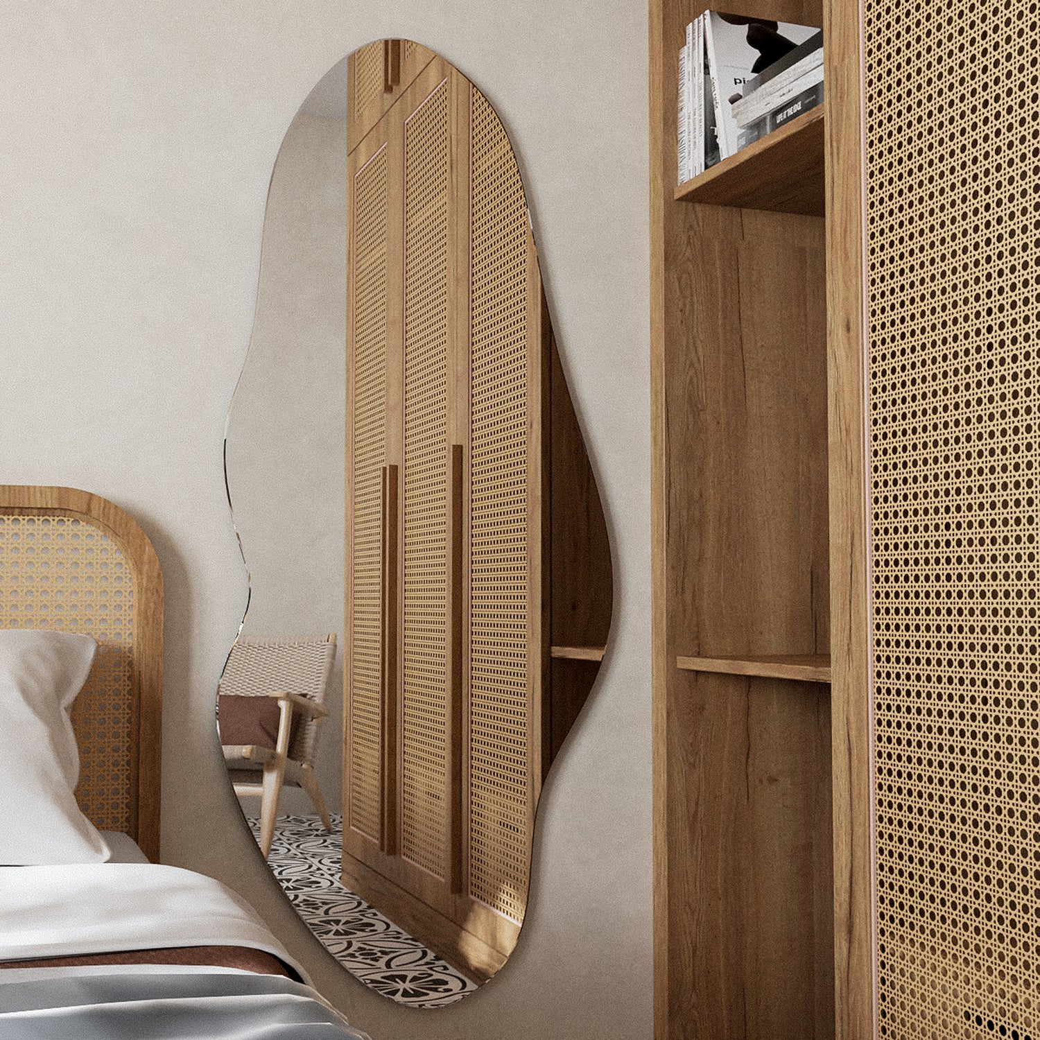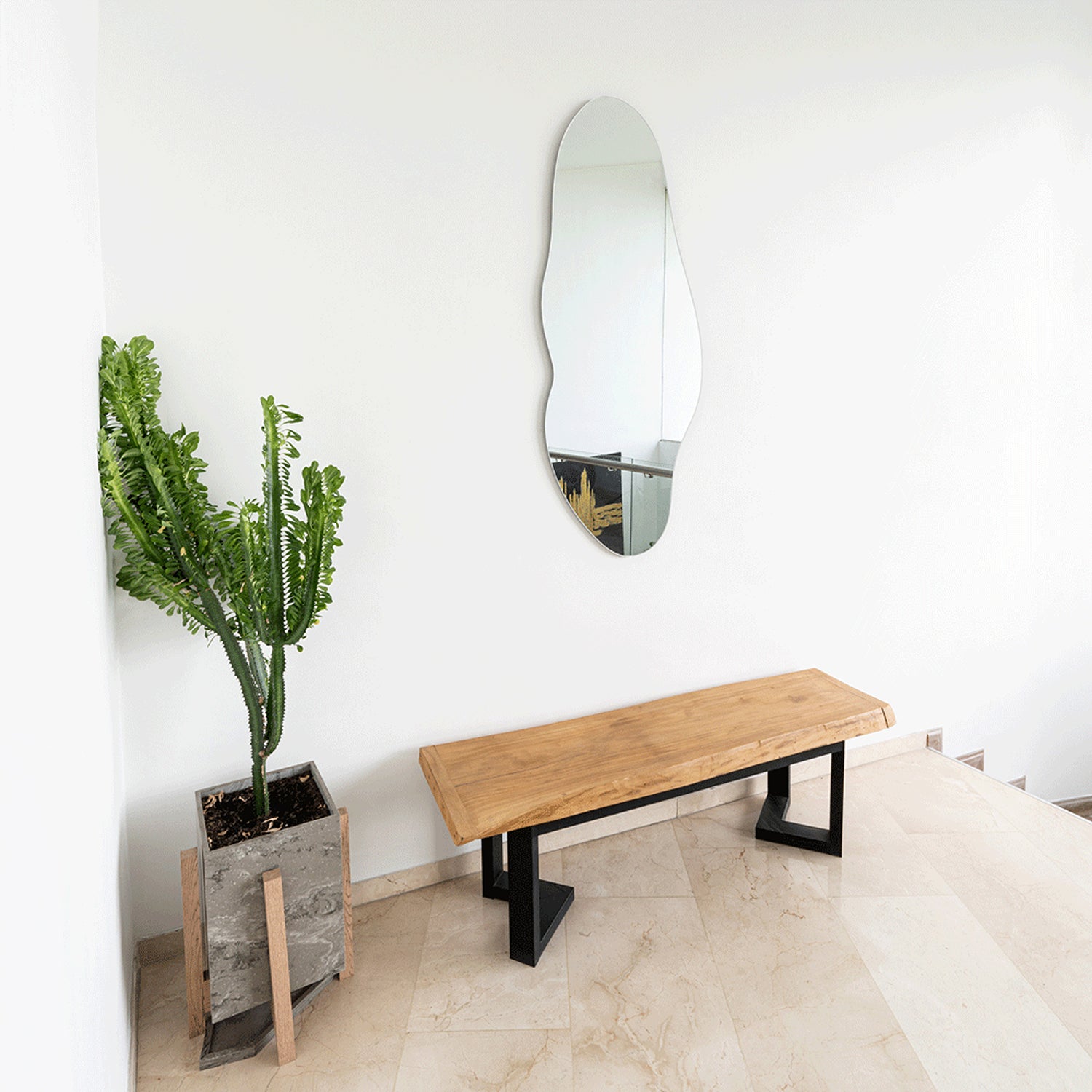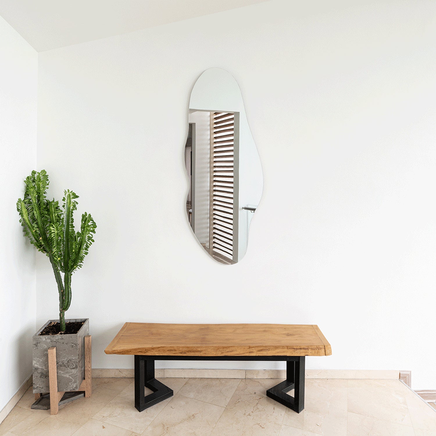 Espejo de Pared Blue Plateado 150x60cm Asimetrico sin Marco