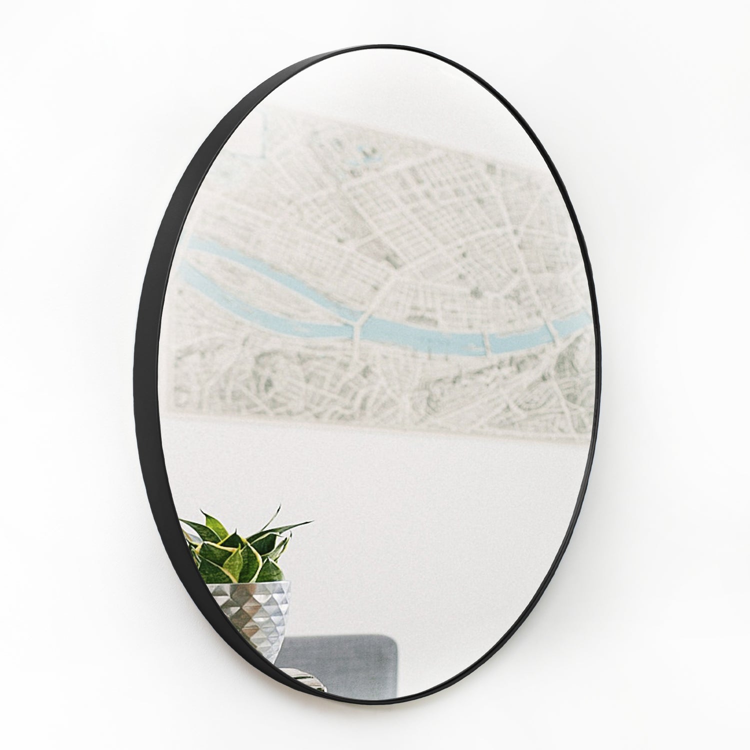 Espejo de Pared Negro 60x60cm Redondo con Marco Metalico