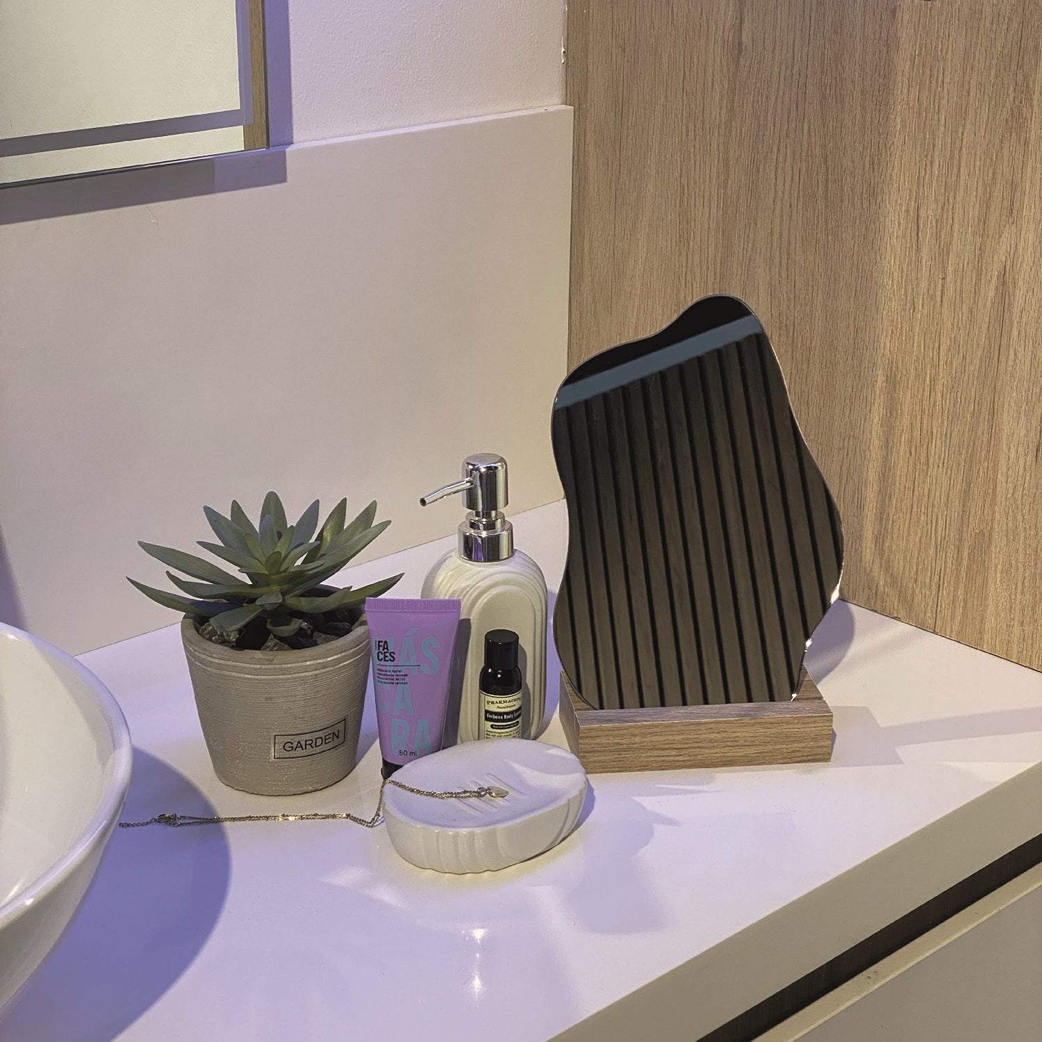 Espejo April 25x18cm Asimétrico Con Base En Madera