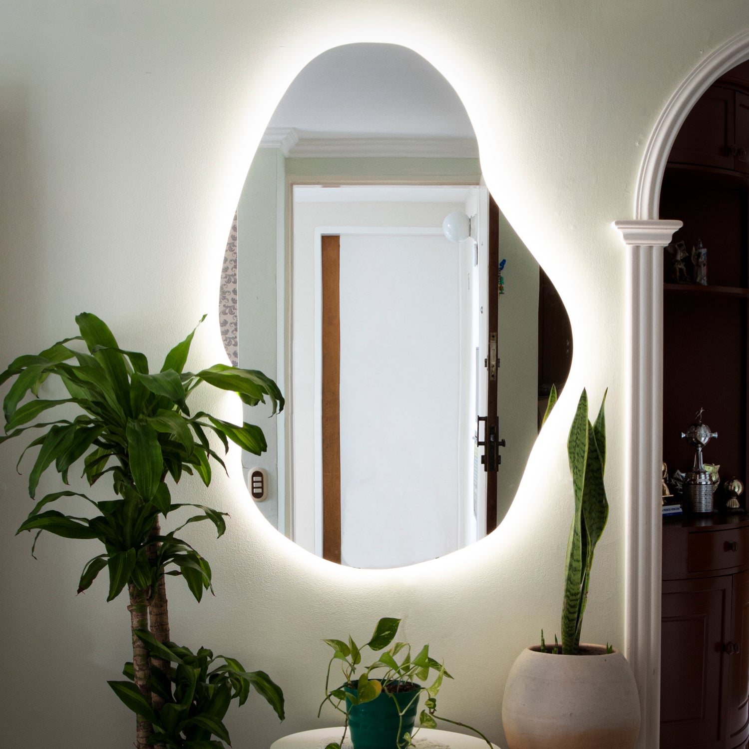 El espejo de pared asimétrico Fuji es mucho más que un simple espejo. Con su diseño moderno y orgánico, su forma irregular y su iluminación LED perimetral, este espejo se convierte en una pieza única y original que aportará dinamismo y carácter a cualquier espacio. Además, su ausencia de marco visible le da un aspecto limpio y minimalista, perfecto para ambientes creativos y contemporáneos. Fácil de instalar y con un manual de armado incluido, este espejo es ideal para aquellos que buscan una pieza funcional con personalidad y que combine estética e innovación. No esperes más para darle un toque de luz y originalidad a tu hogar con el espejo de pared asimétrico Fuji.