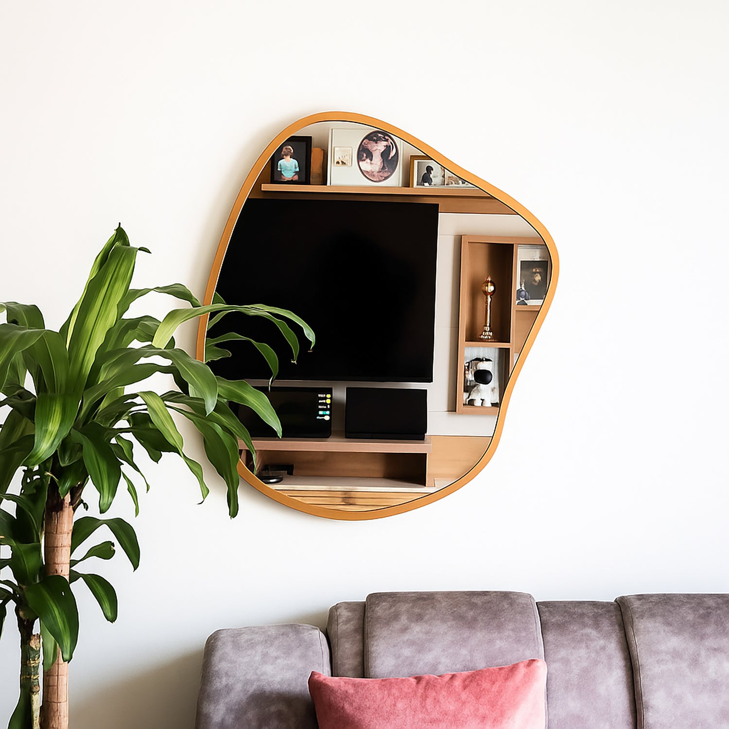 Espejo de Pared Asimetrico Tahiti Dorado 60x70cm con Marco En Madera