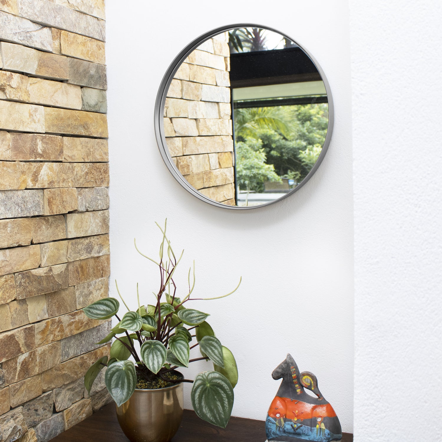 Espejo de Pared Osaka Plata 40x40cm Redondo con Marco Metalico
