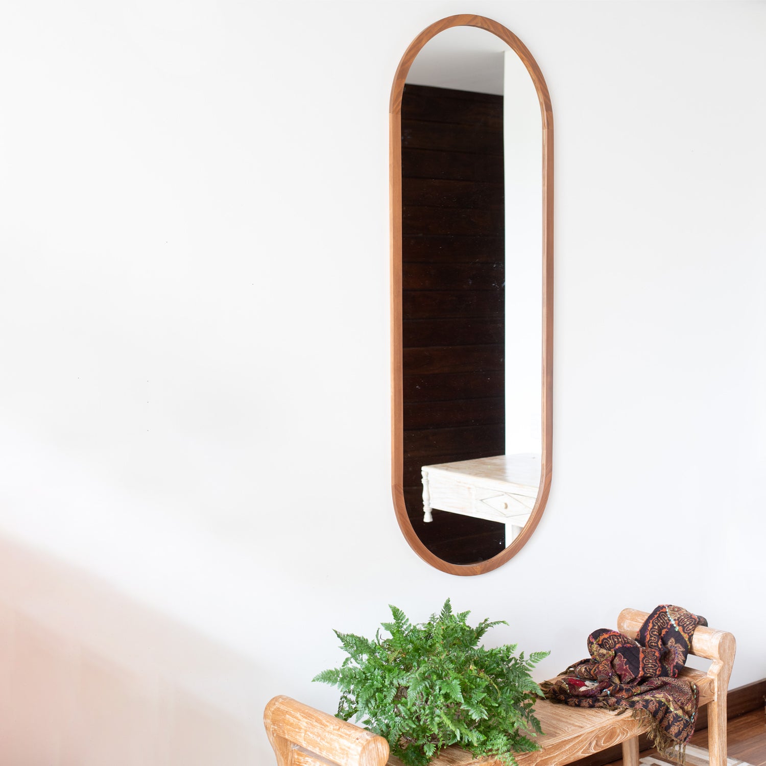 Espejo Visee Ovalado 60x120cm con Marco en Madera Clara Natural