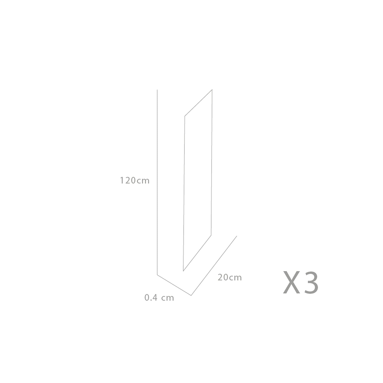 Set X 3 Espejos de pared Ottawa Gris 20x120cm Asimétrico sin Marco