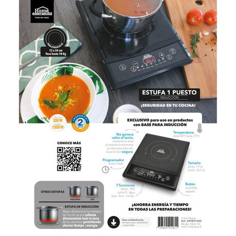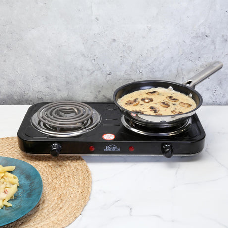 Estufa Eléctrica Negra 21x6cm de Dos Quemadores con Cinco Niveles de Temperatura