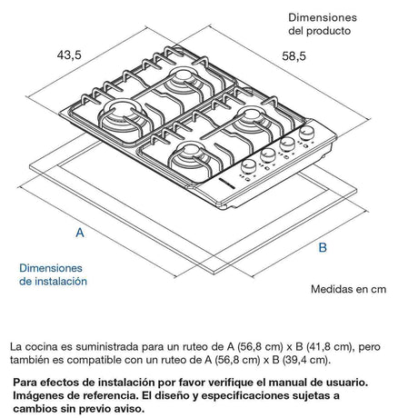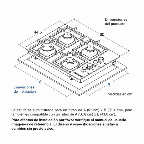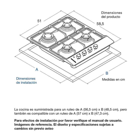 Estufa de Empotrar Challenger Acero 59x51cm de Cuatro Quemadores de Gas Natural