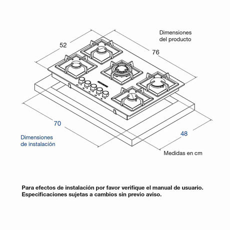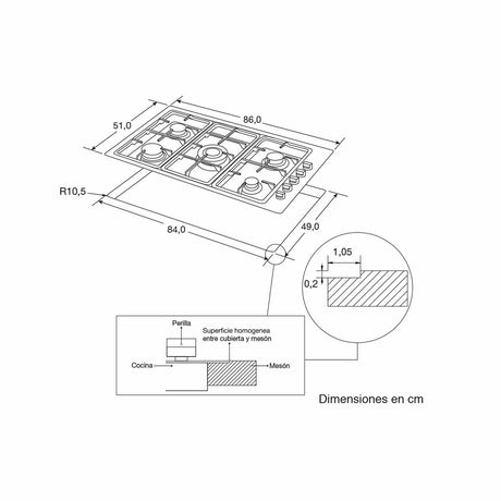 Estufa de Empotrar Challenger Acero 86x51cm de Cinco Quemadores