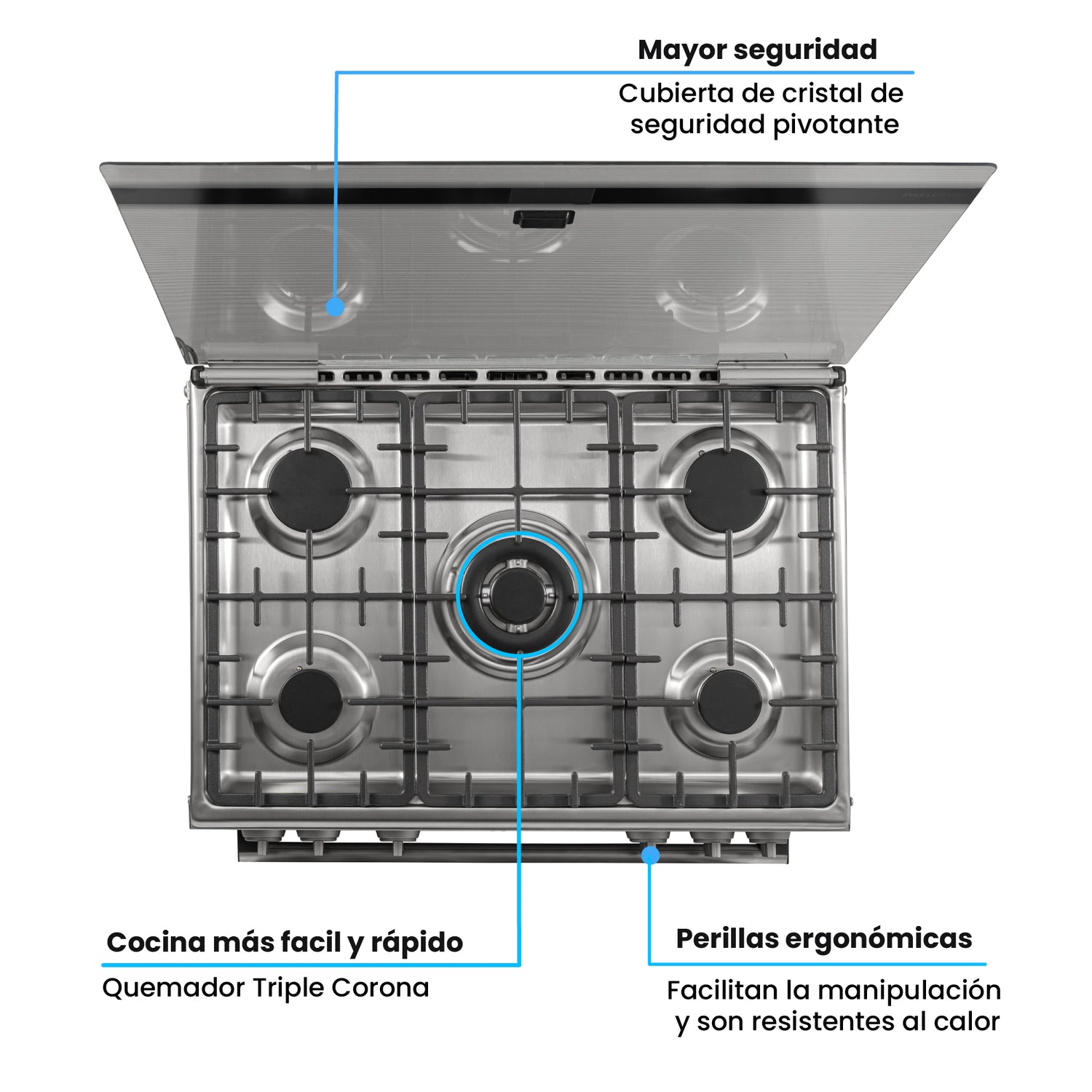Estufa Challenger Cucina Gris 76x93cm de Gas Natural con Cinco Quemadores y con Temporizador