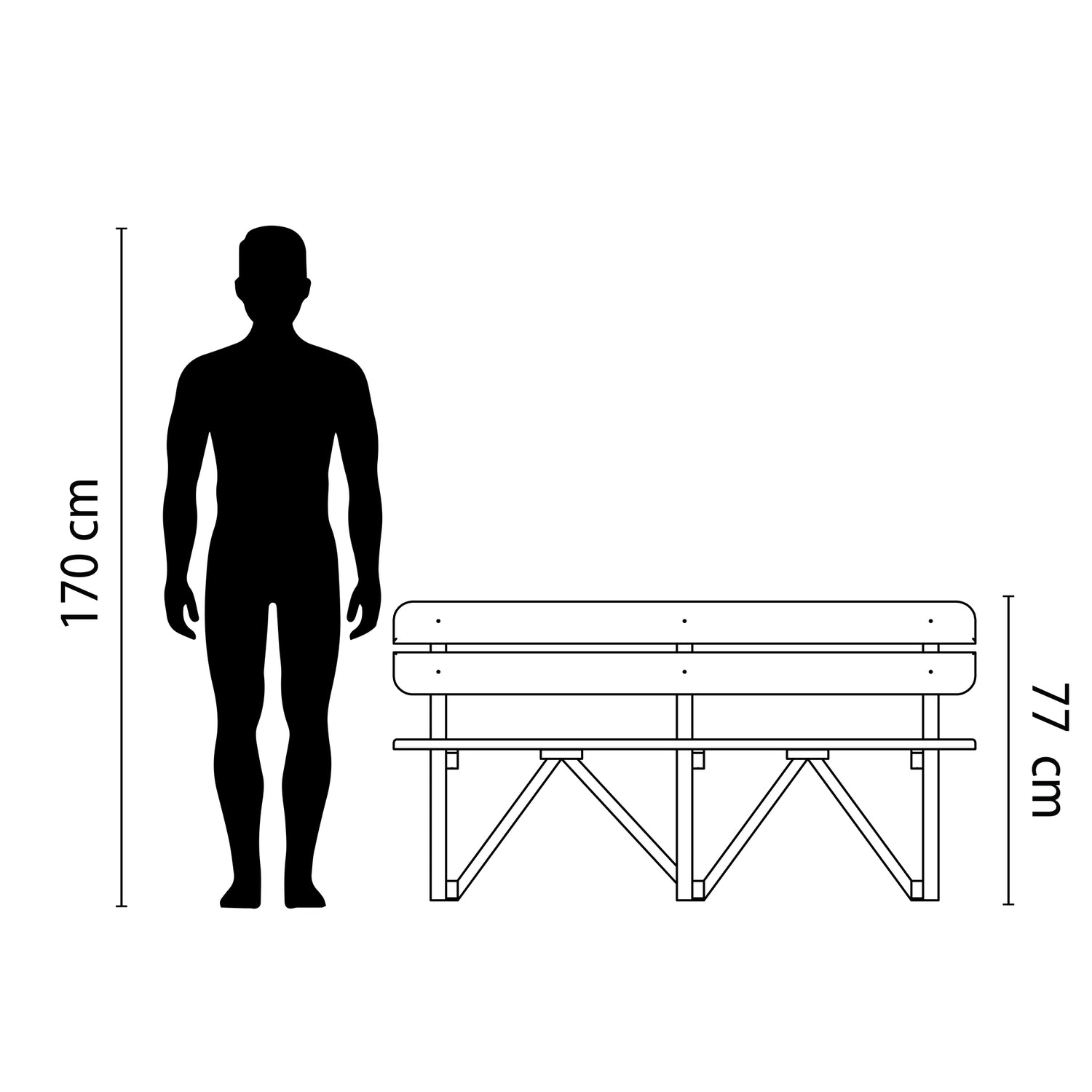 Banca Begonia Negro 151x80cm sin Apoyabrazos