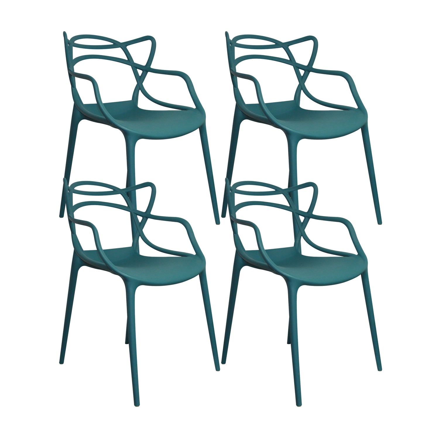 Kit x 4 Sillas para Exteriores Solna 54 cm Azul Petróleo Europeo con Apoya Brazos