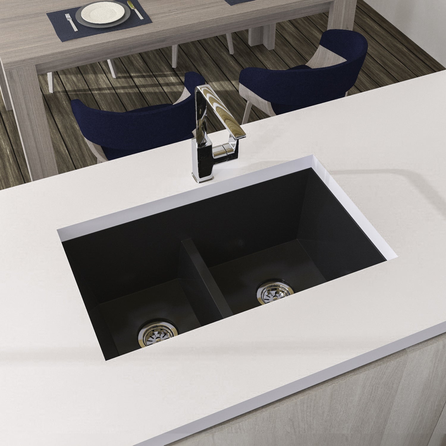 Lavaplatos Koa Doble Negro Brillante 84x26cm Sobrepuesto