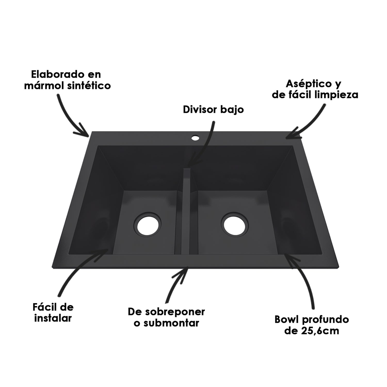 🚚 Envío GRATIS - Ver Cobertura aquíLavaplatos Koa Doble Negro Brillante 84x26cm Sobrepuesto está agotado y se enviará tan pronto como vuelva a estar disponible.