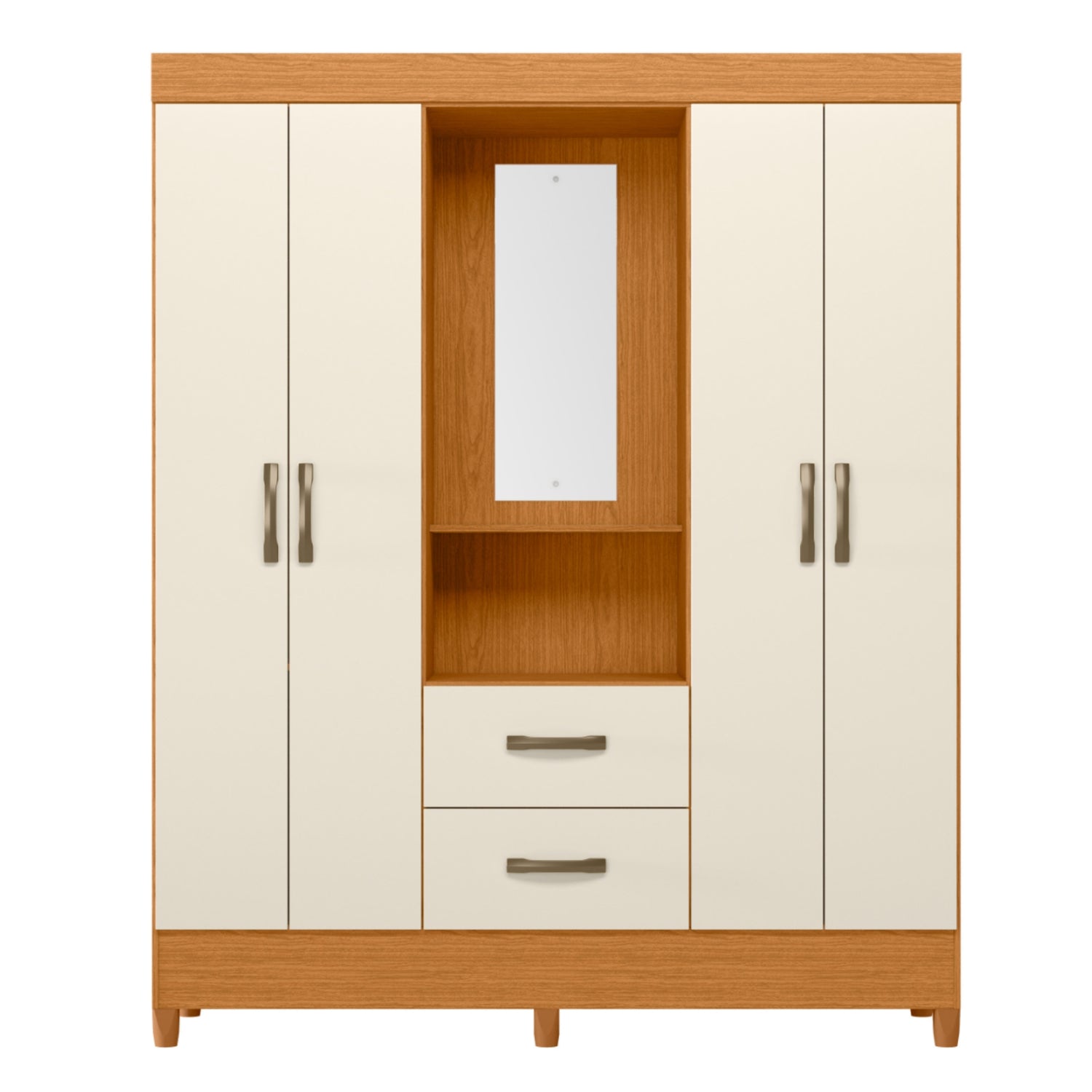 Armario para Ropa Moobi Café y Beige 147x181cm con Dos Cajones con Cuatro Puertas y con Espejo