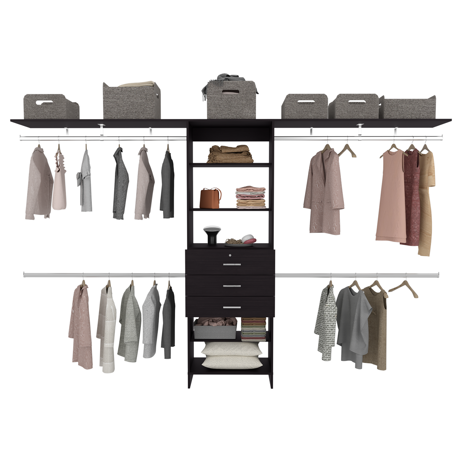 Closet Plego Wengue 300x187.7cm Con Tres Cajones y Sin Puertas