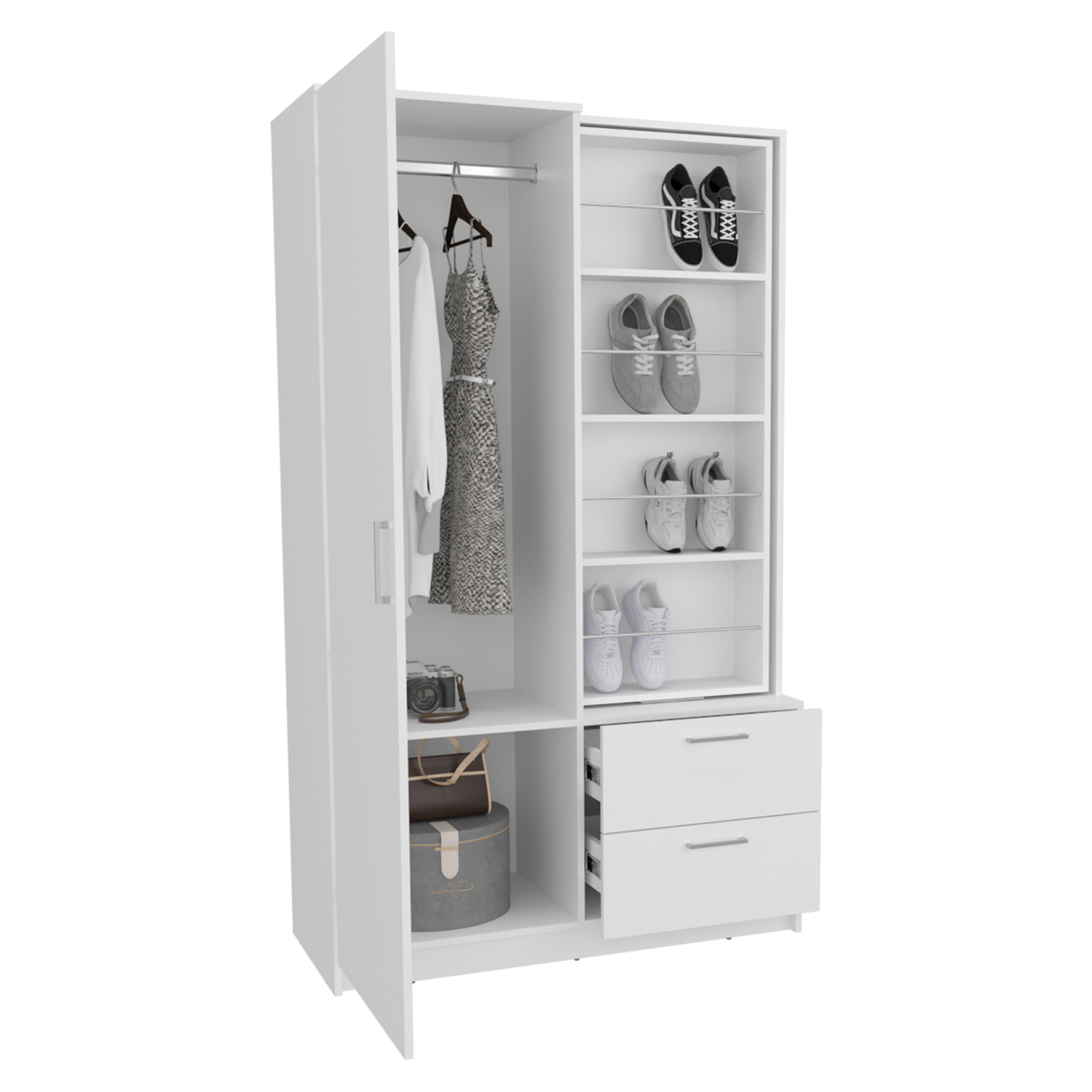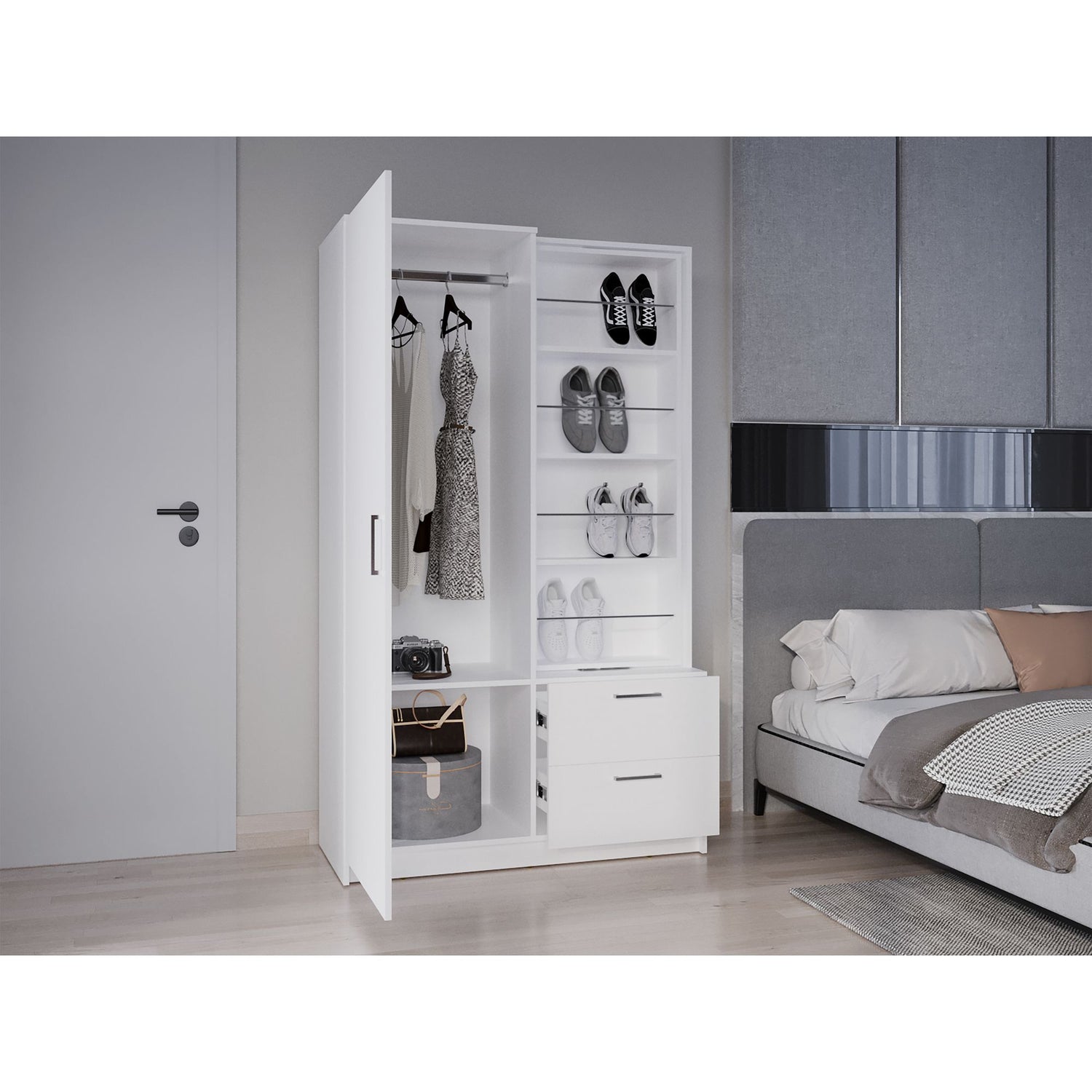 Closet Seville Blanco 106.6x180cm Con Dos Cajones Dos Puertas y Espejo