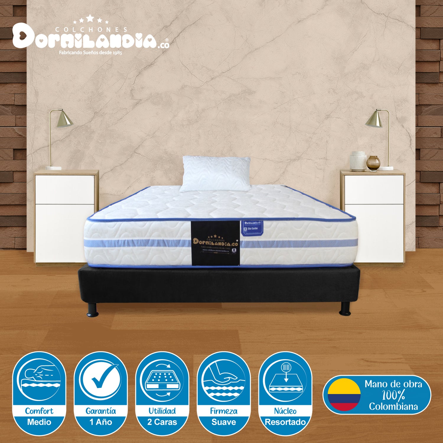 Combo Base Cama y Colchón Caribe Blanco y Negro Sencillo 100 X 190 Cm Firmeza Suave Doble Faz