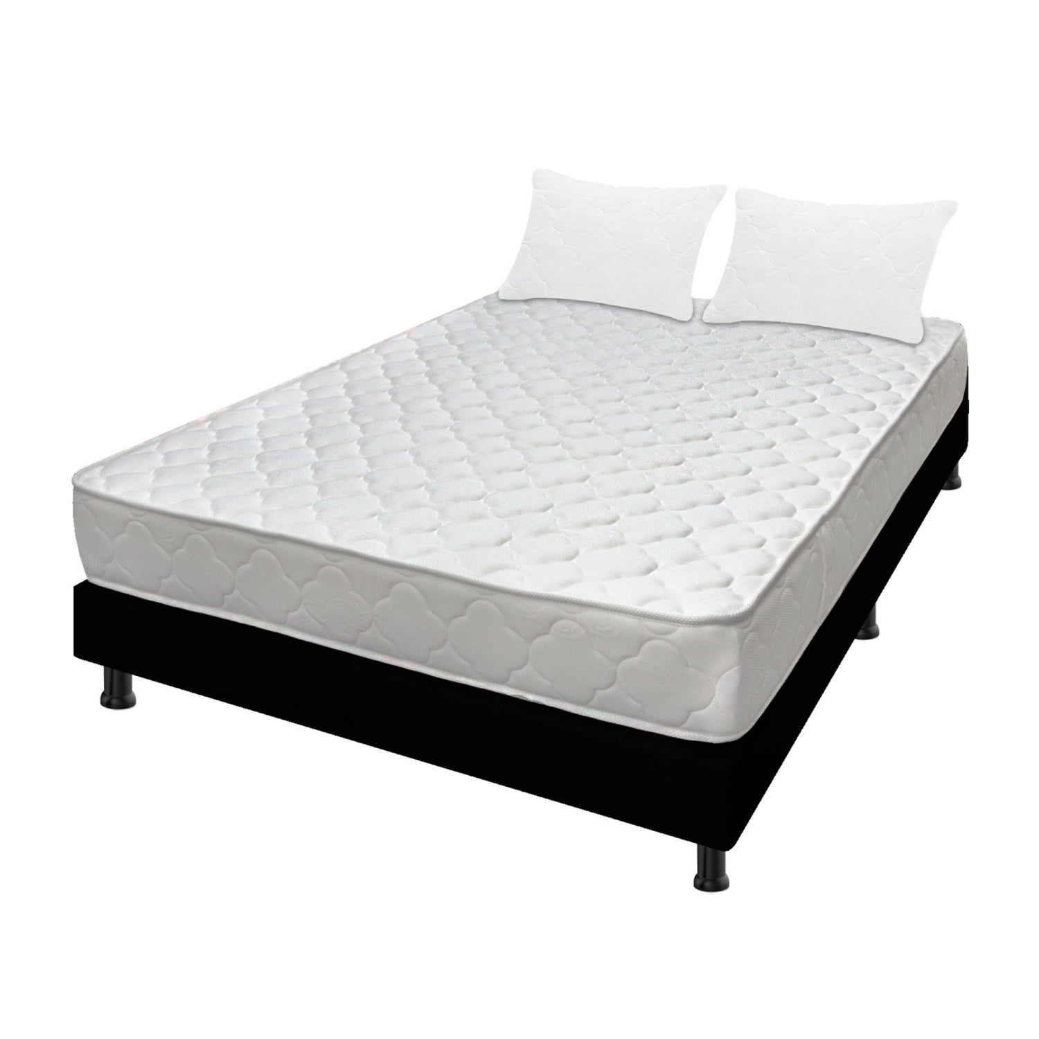 Combo Base Cama y Colchón Macizo Blanco y Negro Doble 140 X 190 Cm Firmeza Firme Doble Faz