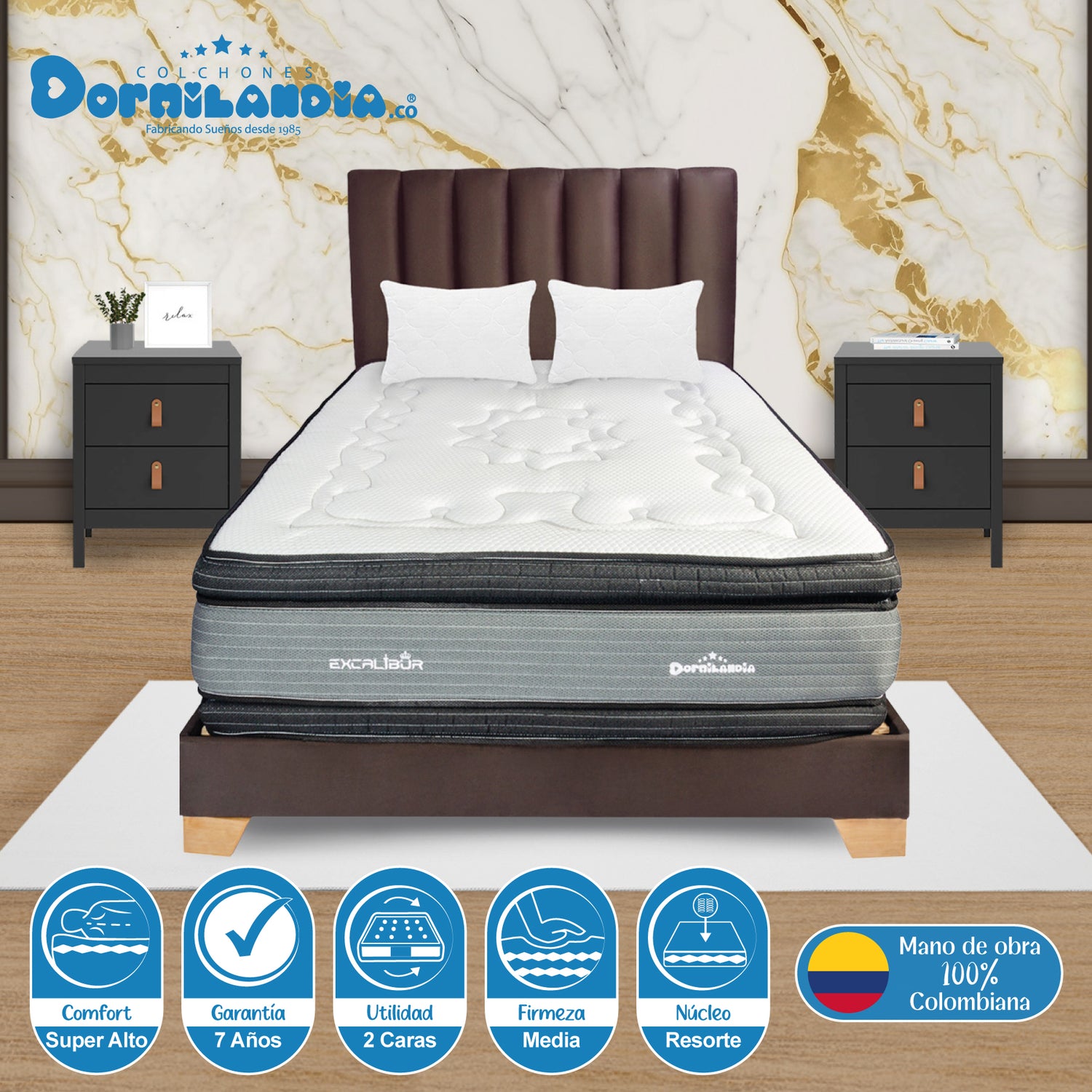 ¿Buscas un descanso de calidad y estilo moderno? ¡El Mega Combo Colchón Excalibur es la opción perfecta para ti! Con su núcleo de resorte tipo bonell, obtendrás una mayor comodidad y soporte. Además, su doble faz te permitirá voltearlo y rotarlo para prolongar su vida útil. El tapiz en tela tejido Jacquard con alto contenido de algodón regula la temperatura externa, brindándote una sensación de frescura. Incluye base cama, cabecero y almohada para una experiencia completa. Su firmeza intermedia te garantiza un descanso placentero. ¡Hazte con este combo y disfruta de un sueño reparador!