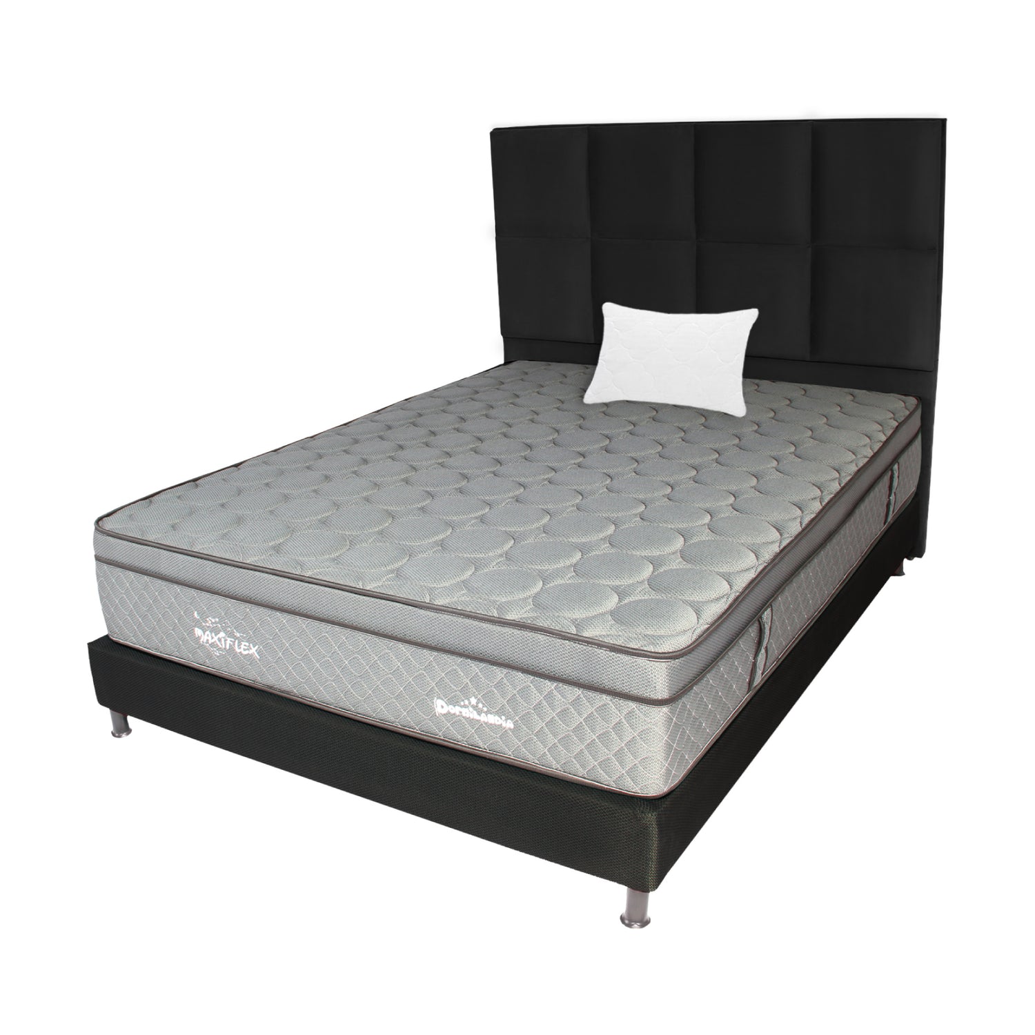 Combo Colchón Maxiflex Gris y Negro Sencillo 100 X 190 Cm Firmeza Suave Con Cabecero y Base Cama