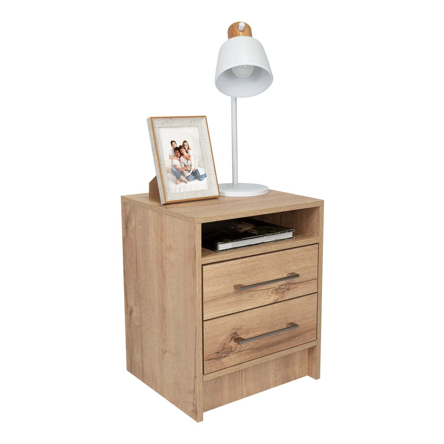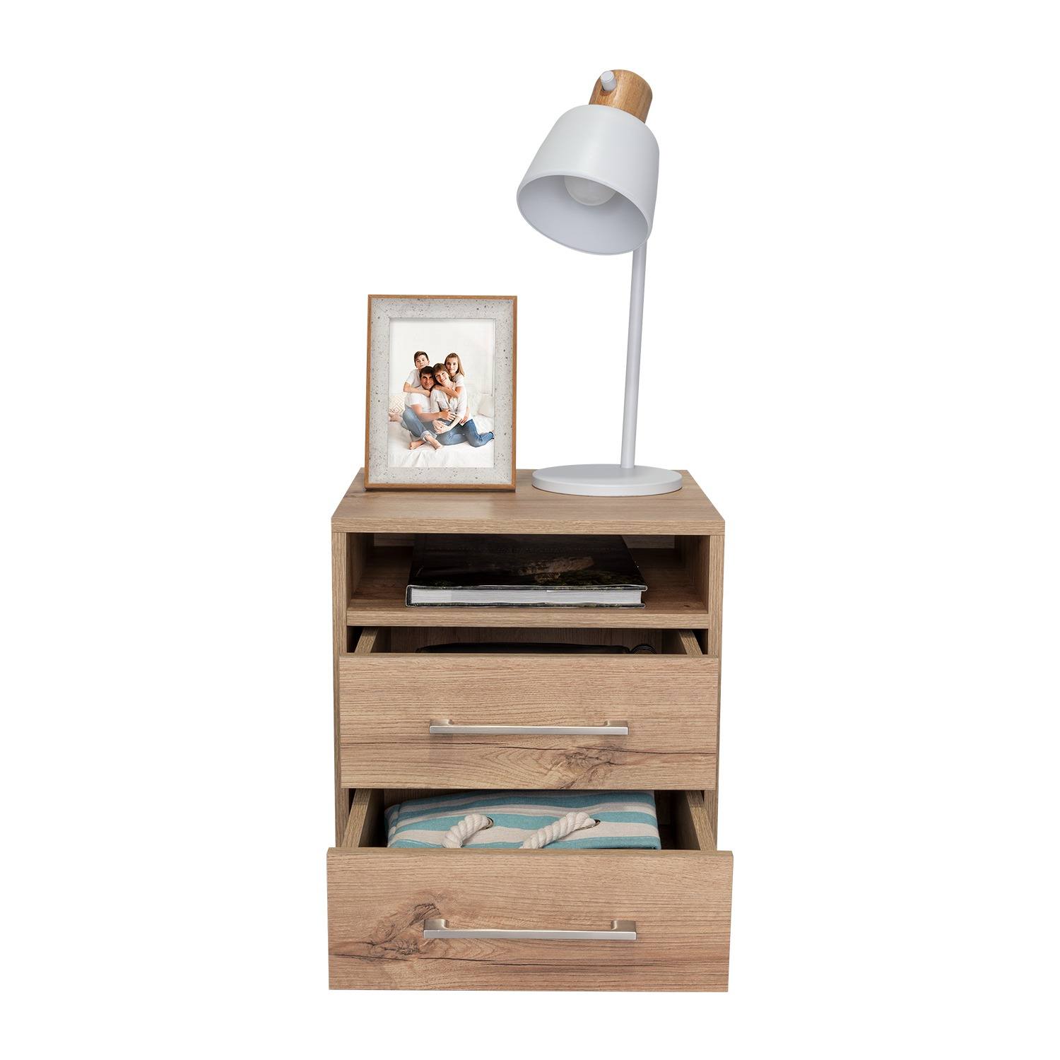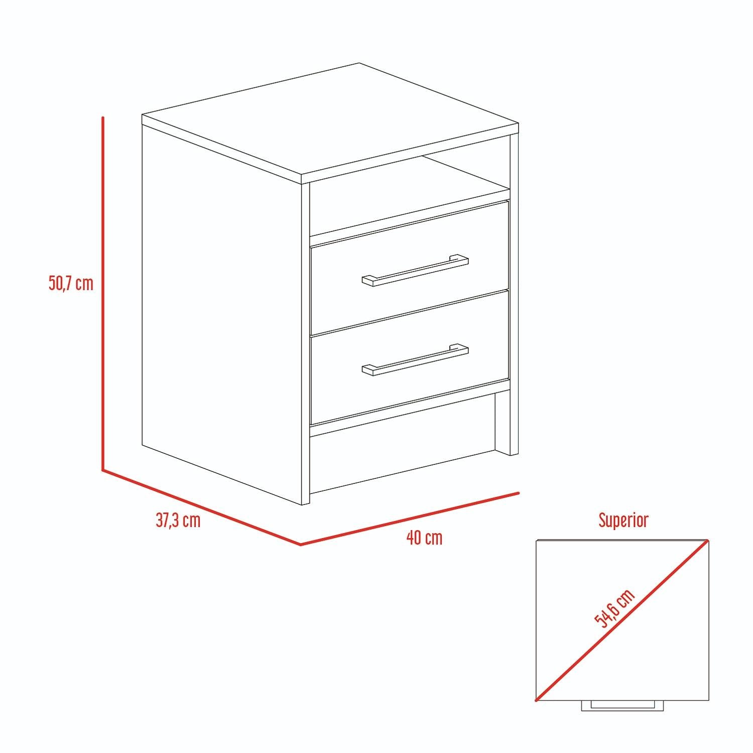 Mesa de Noche Eter Duna 40x40cm con Dos Cajones y con Un Compartimiento