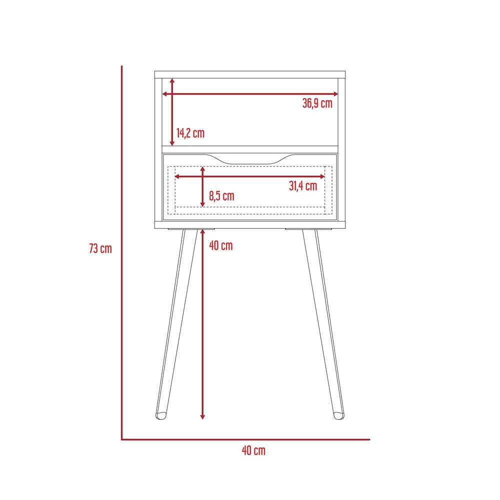 Mesa de Noche Otom Blanco 40x50.7cm con Un Cajón y con Dos Compartimientos