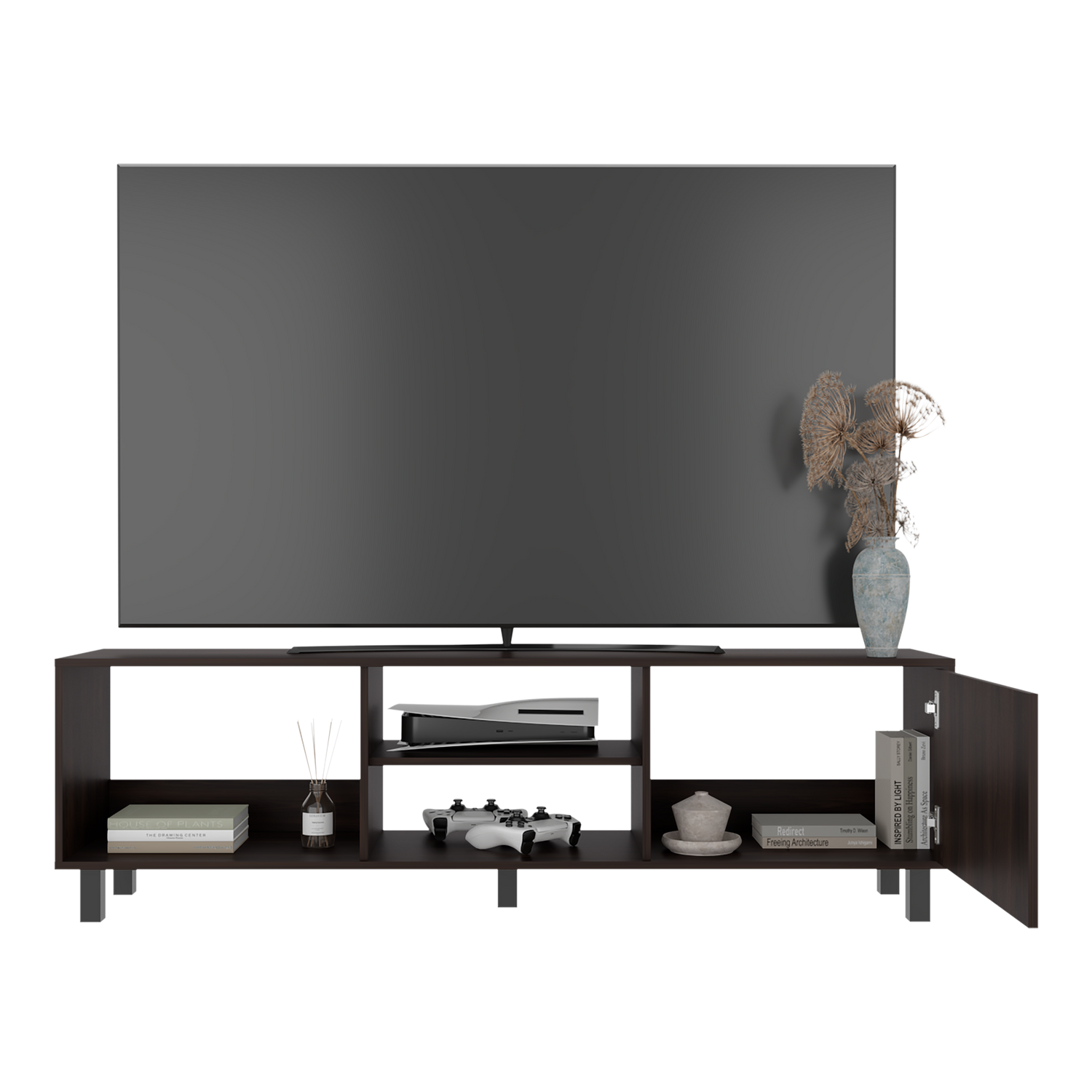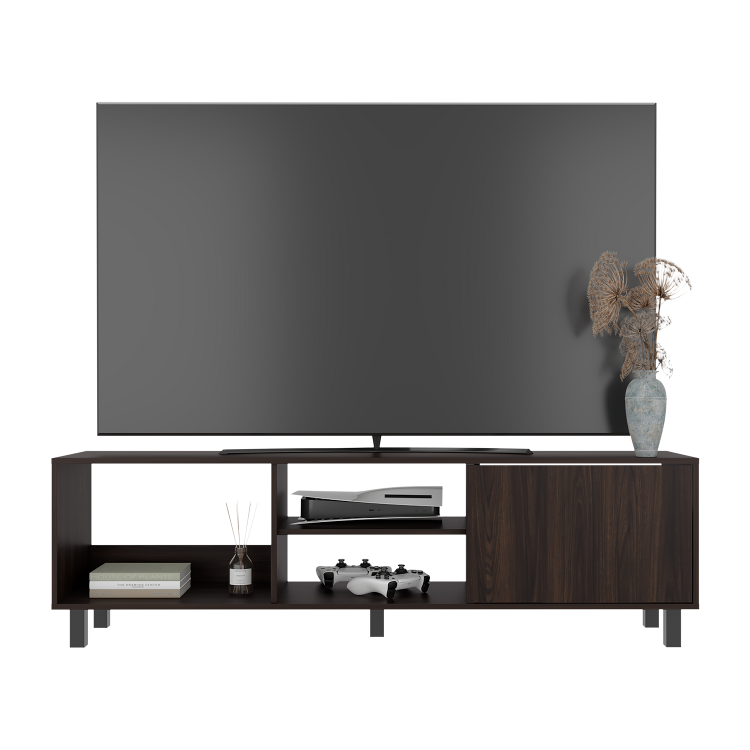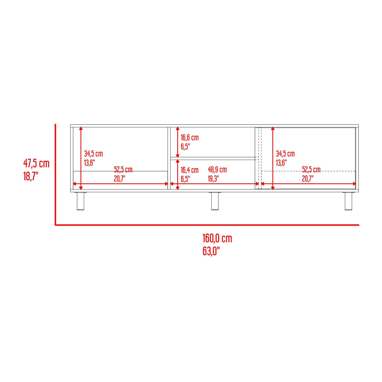 Rack de TV Tunez Nogal 160x47.5cm Para TV Hasta 70" Pulgadas con Cuatro Compartimientos y Ranuras para Cable