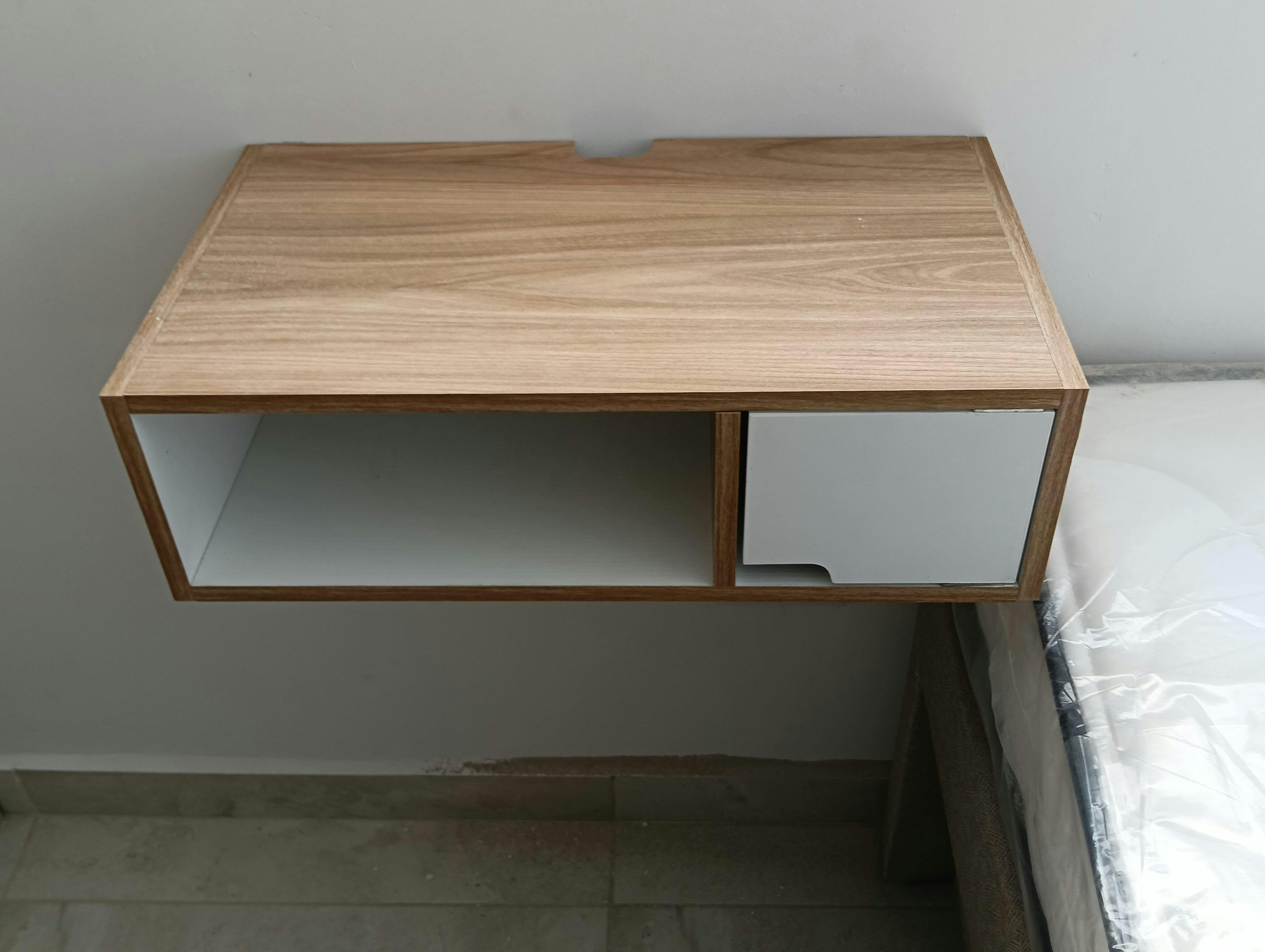 Repisa Trento Madera Natural y Blanco 50x15cm Rectangular con Un Cajón