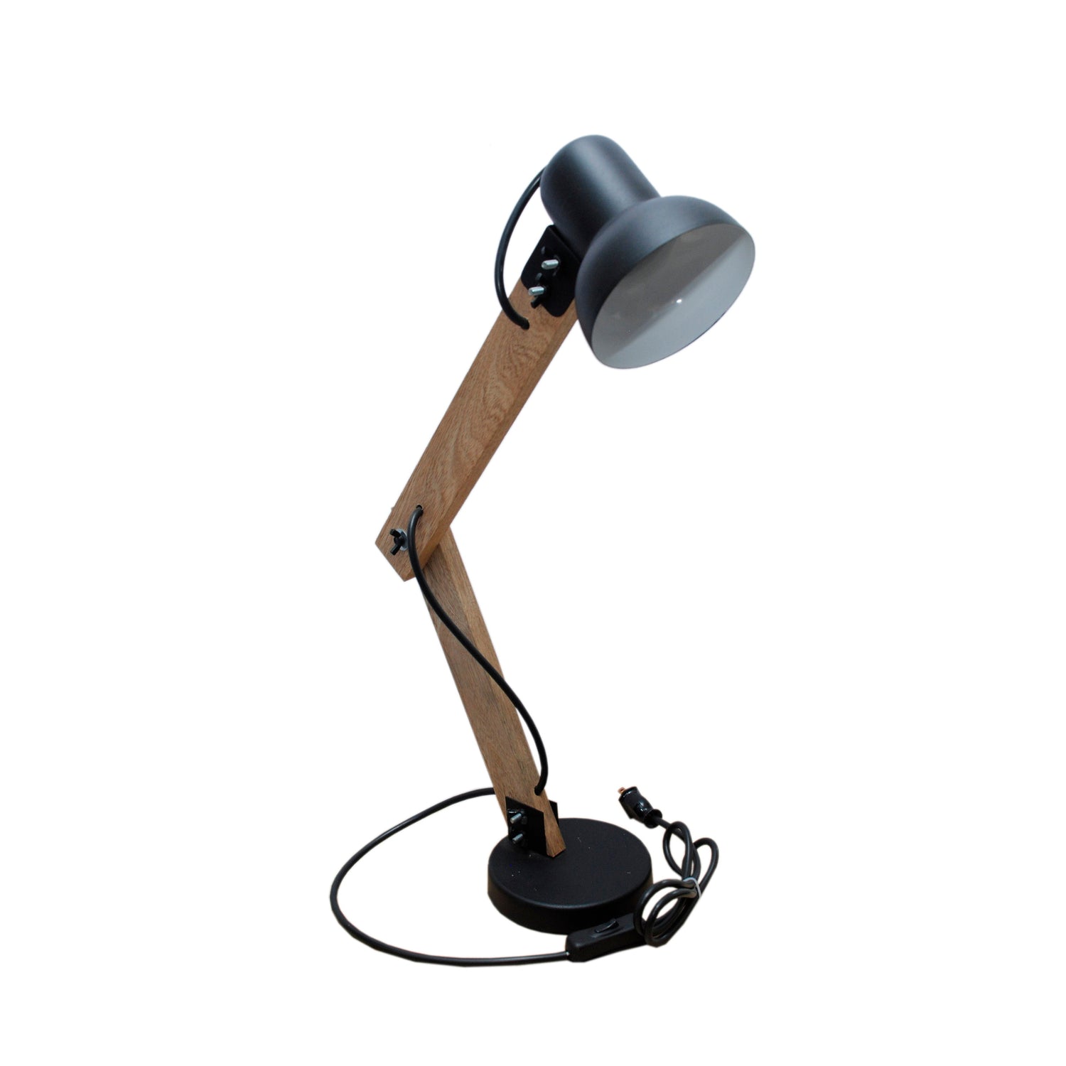Lámpara de Mesa Led Galo Lisa Negro y Madera 12x60cm de Una Luz sin Bombilla