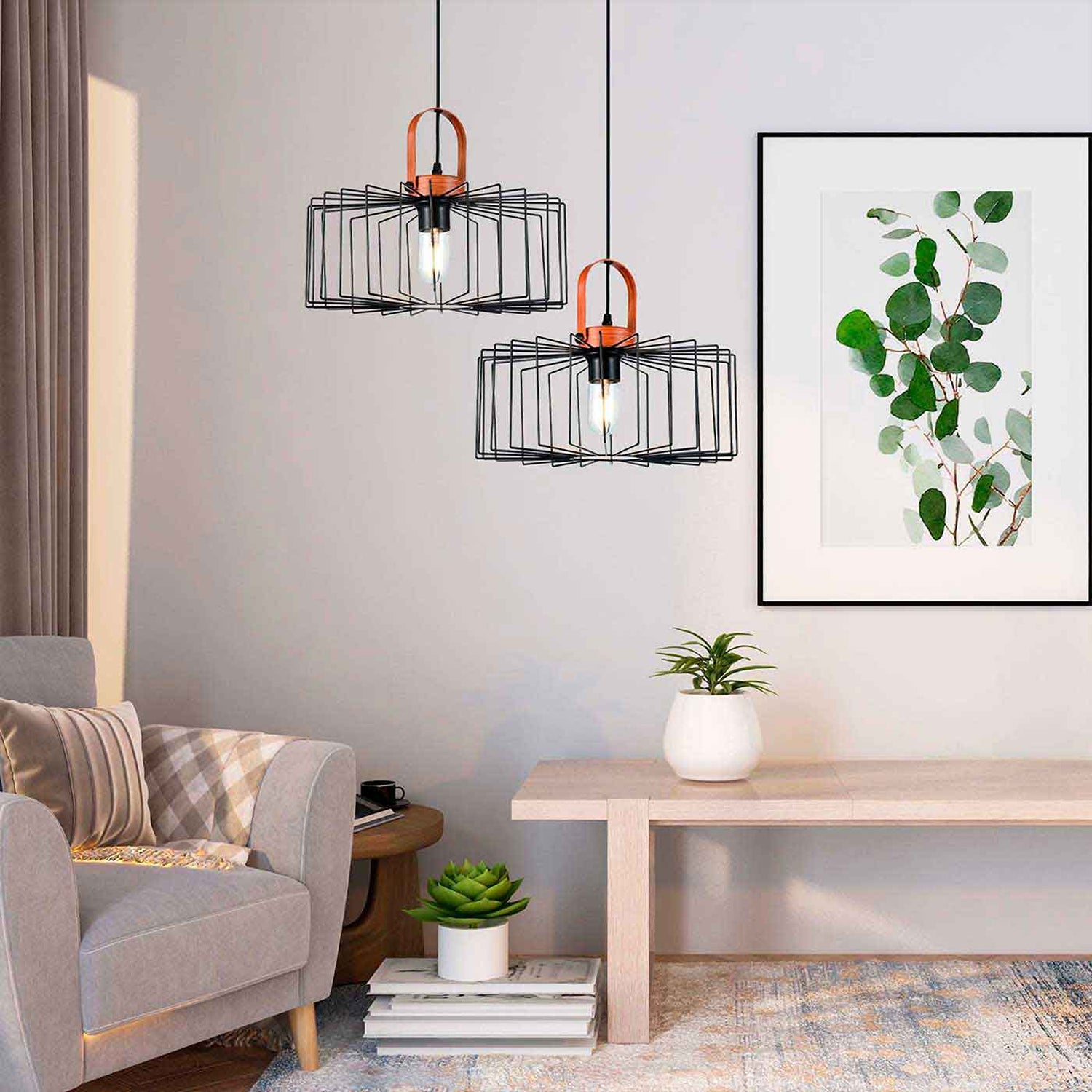¡Ilumina tu hogar con estilo y elegancia con nuestra Lámpara Colgante Aymar! Sus preciosos cilindros de metal pintado y sujeción le dan un toque moderno y sofisticado a cualquier espacio. Esta lámpara se adapta perfectamente a cualquier diseño de interiores y cuenta con certificación y cumplimiento de reglamentación Retilap. Además, su uso sugerido con bombillas de filamentos LED te garantiza una iluminación eficiente. Con su manual de instalación y bombilla incluidos, su instalación será sencilla y rápida. ¡Haz de tu hogar un lugar más acogedor con nuestra Lámpara Colgante Aymar!