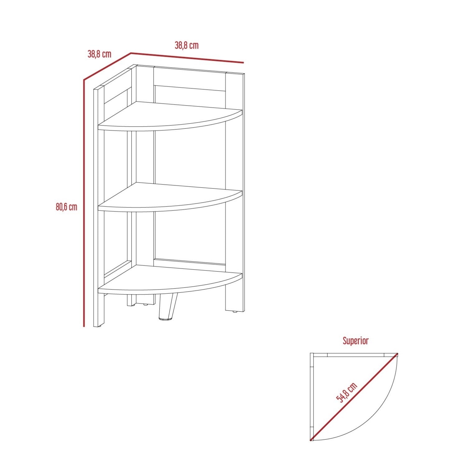 Mesa Auxiliar RIGA Wengue 39 cm Rectangular Arqueado Esquinera con Tres Entrepaños
