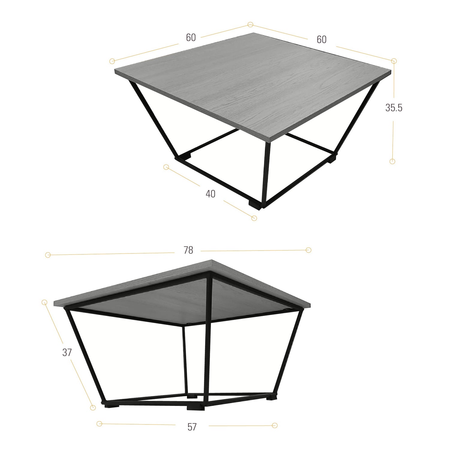 Mesa de Centro Leeds Oasis y Negro Metálico 60x35.5cm Cuadrado con Patas