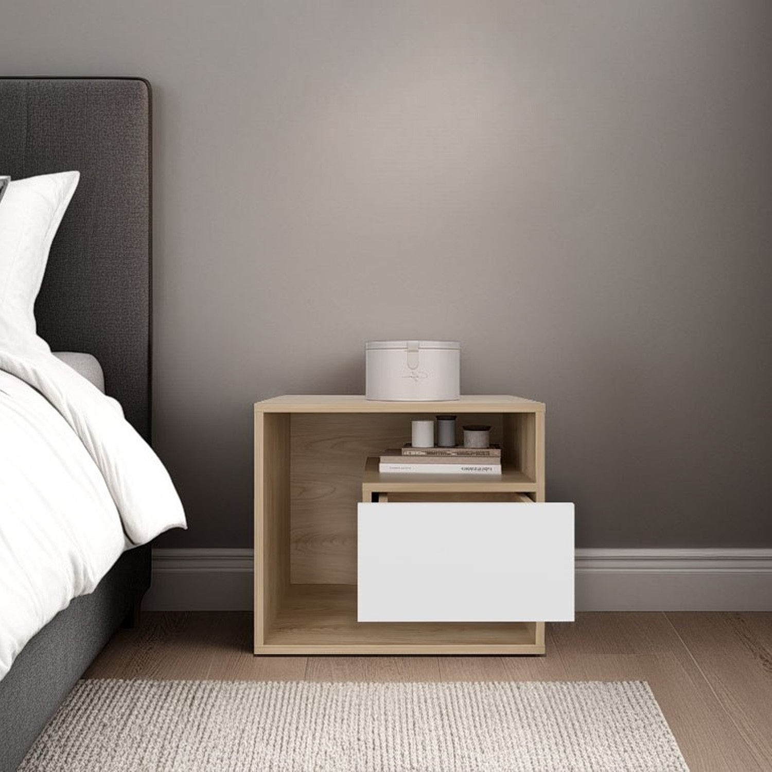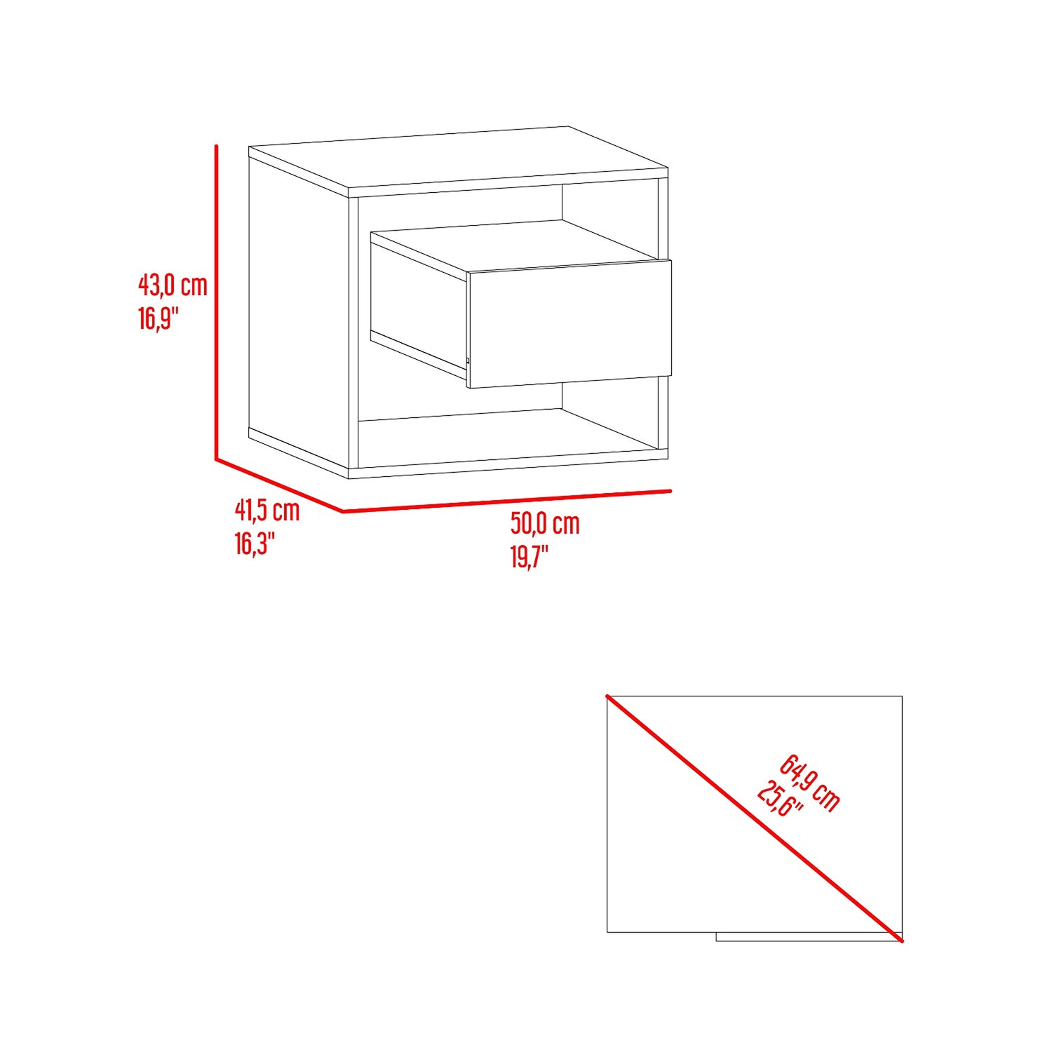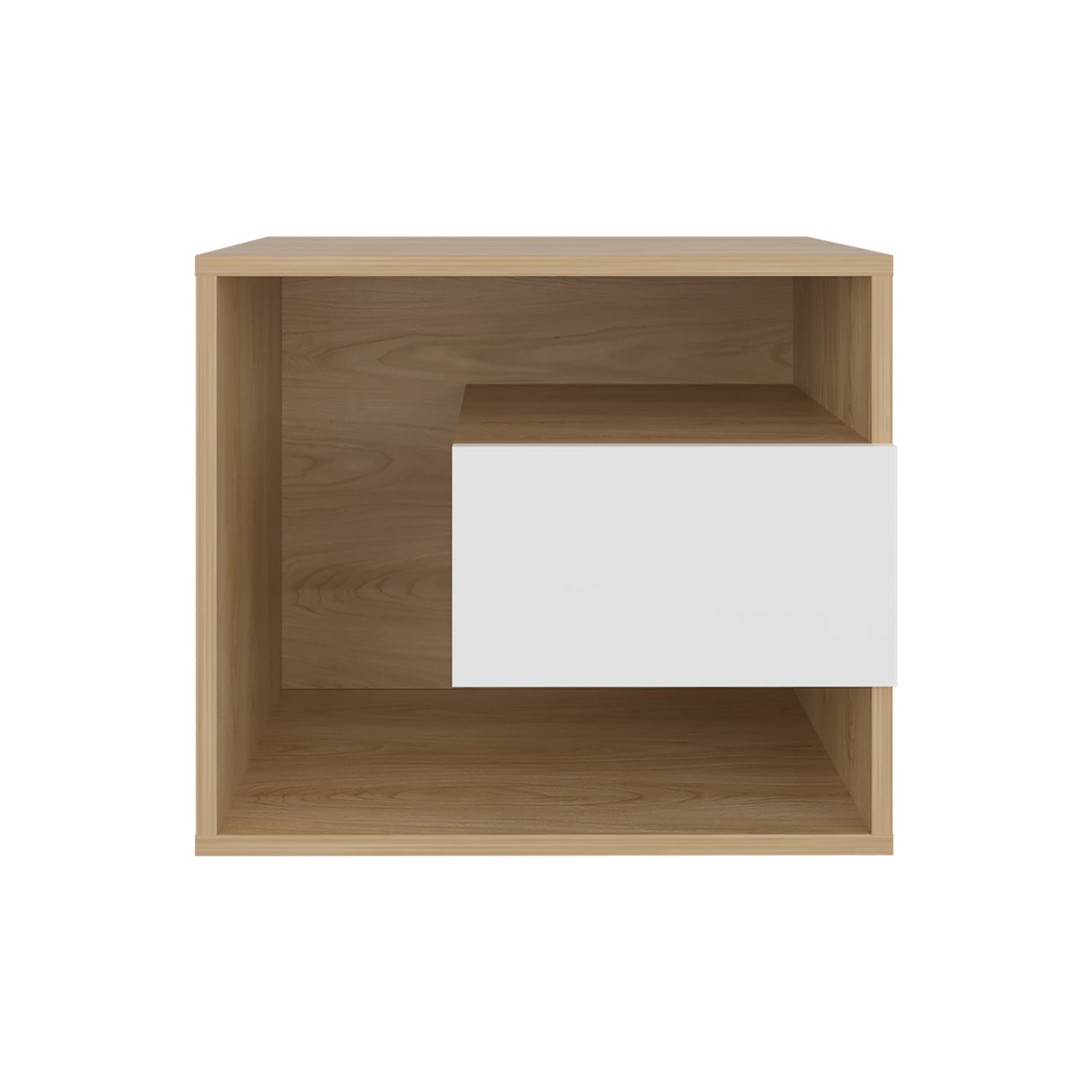 Mesa de Noche Bud Fresno Europeo y Blanco 50x43cm con Un Cajón y con Un Compartimiento