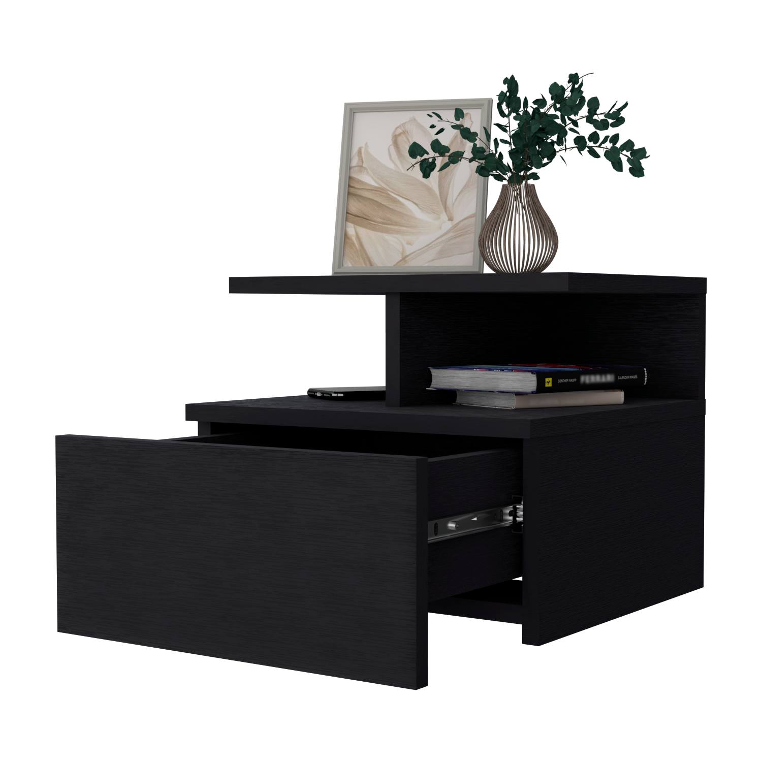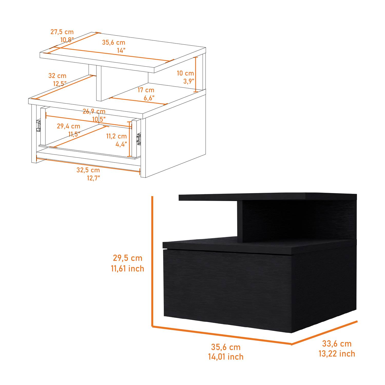 Mesa de Noche Flotante Wengue 36x30cm con Un Cajón y con Un Compartimiento