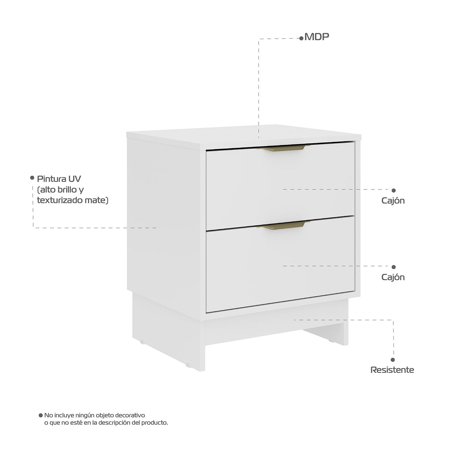Mesa de Noche Maui Blanco 49x56cm con Dos Cajones