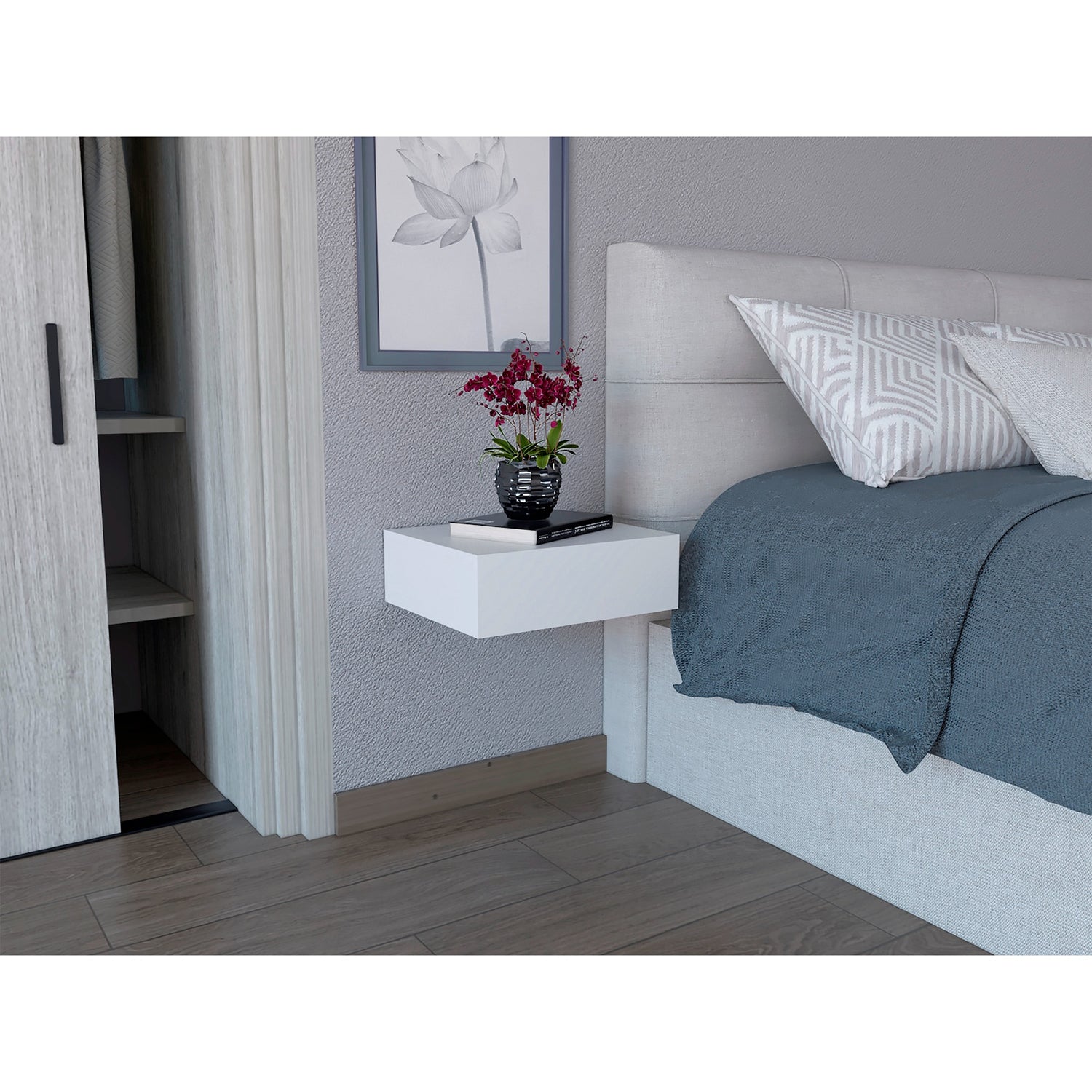 Mesa de Noche Milano Blanco 40x13cm Flotante con Un Cajón
