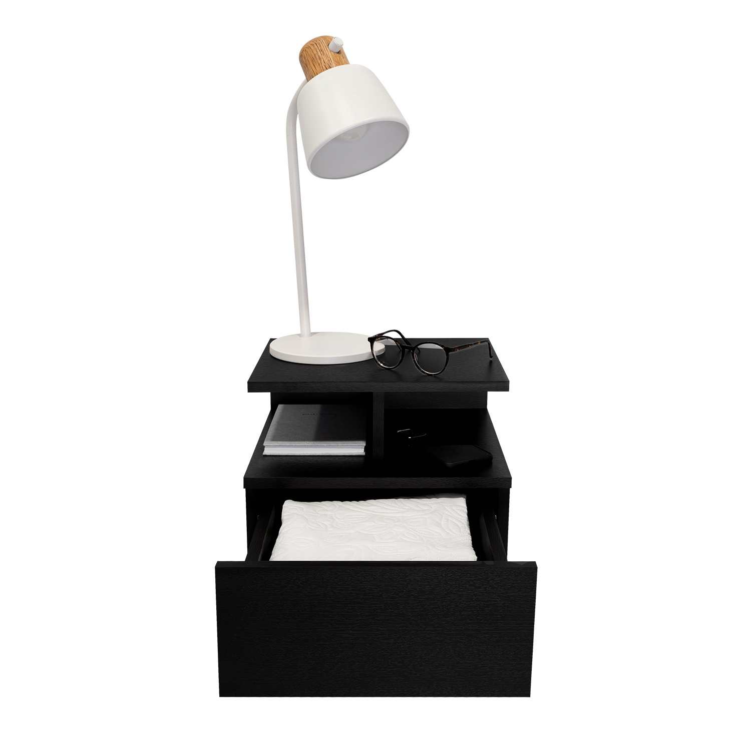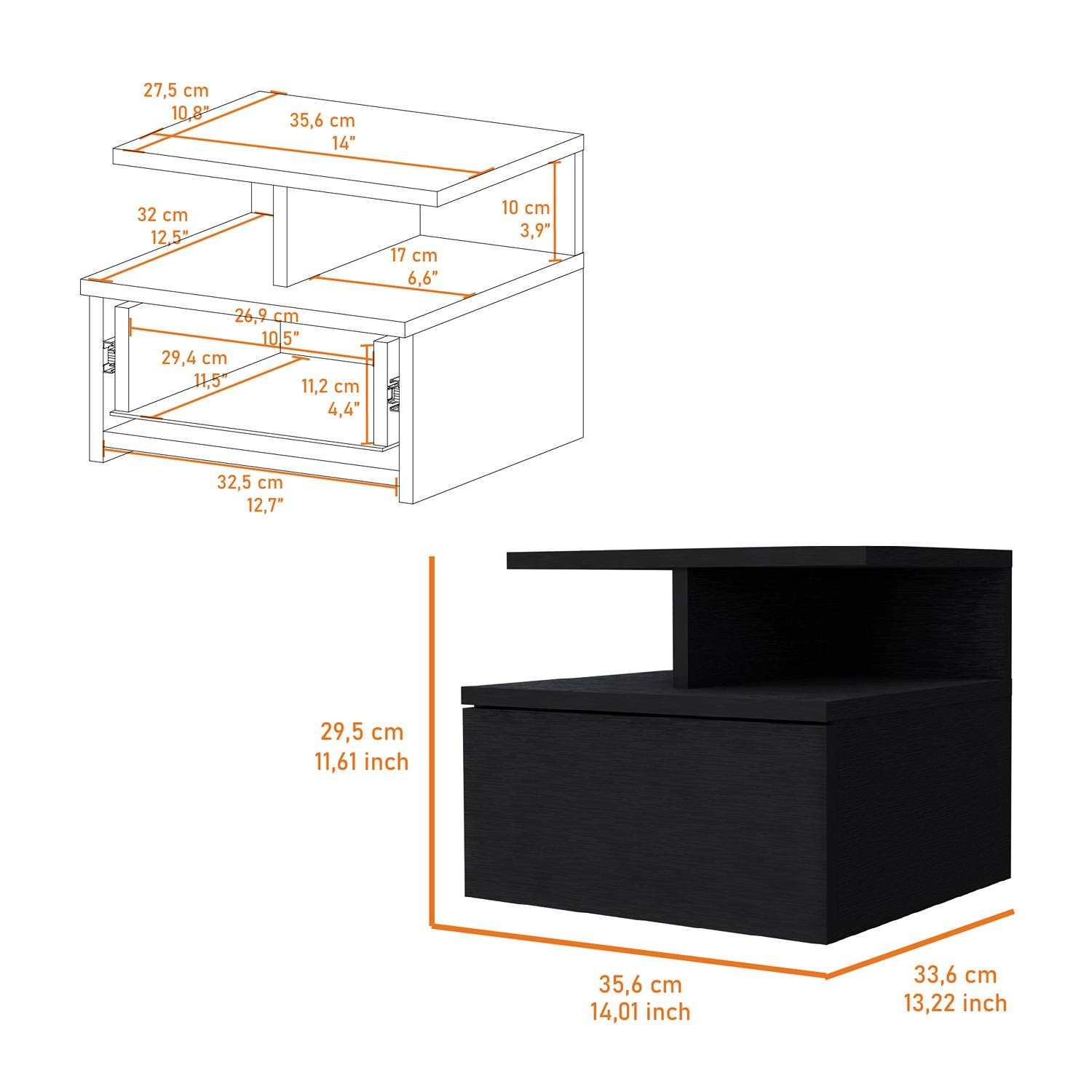 Mesa de Noche Flotante Wengue 36x30cm con Un Cajón y con Dos Compartimientos