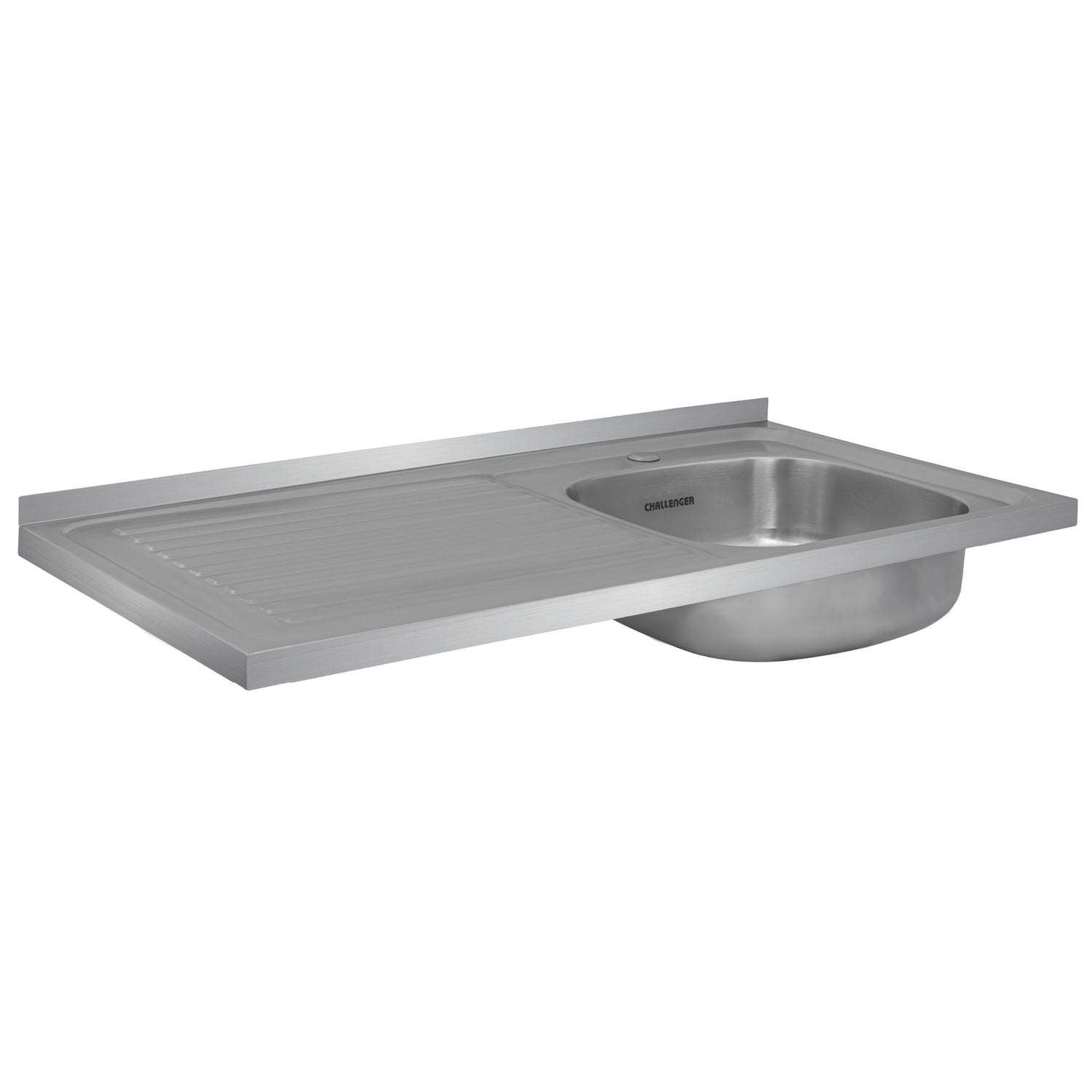 Mesón de Cocina Challenger Gris 100x50cm de Acero Inoxidable con Pozuelo Lado Derecho y sin Estufa