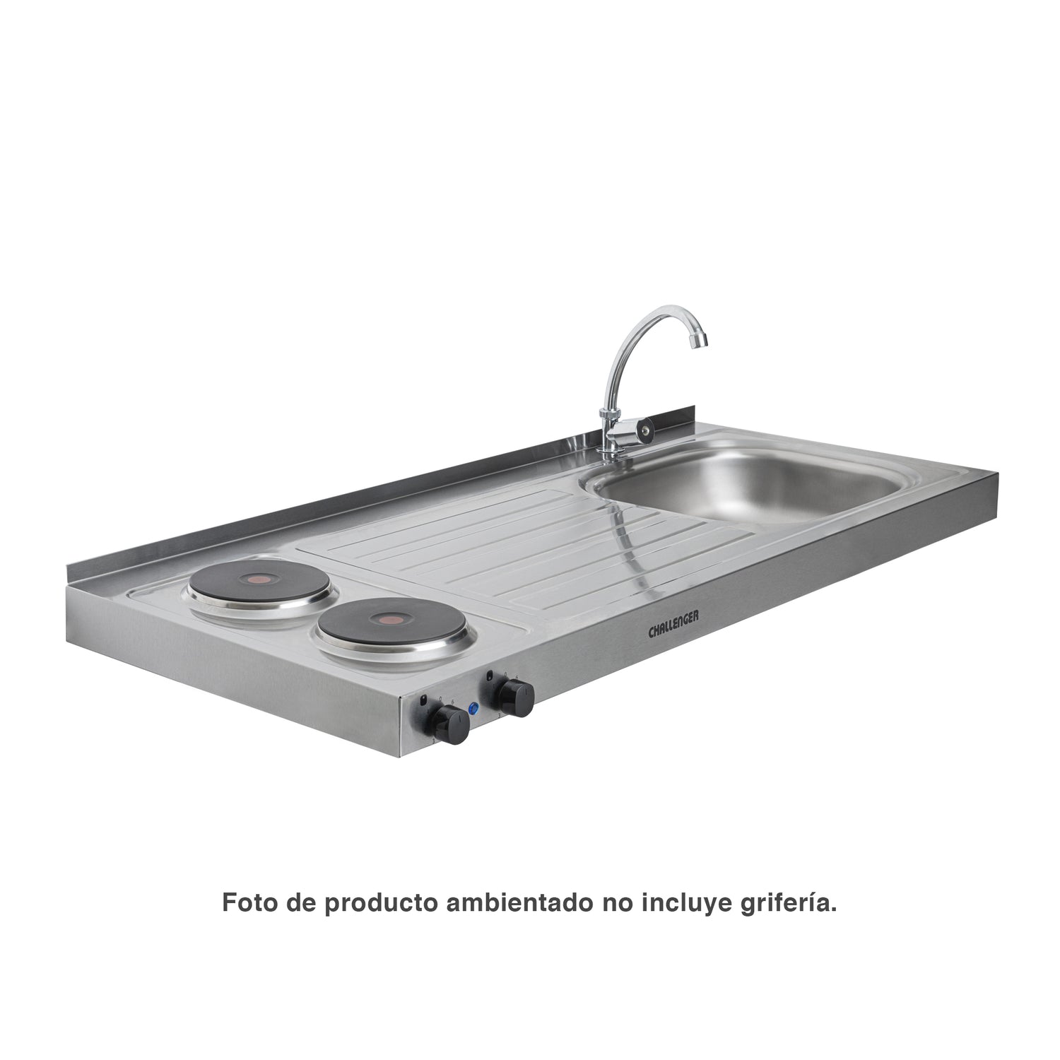 Mesón de Cocina Challenger Gris 120x50cm de Acero Inoxidable con Pozuelo Lado Derecho y con Estufa