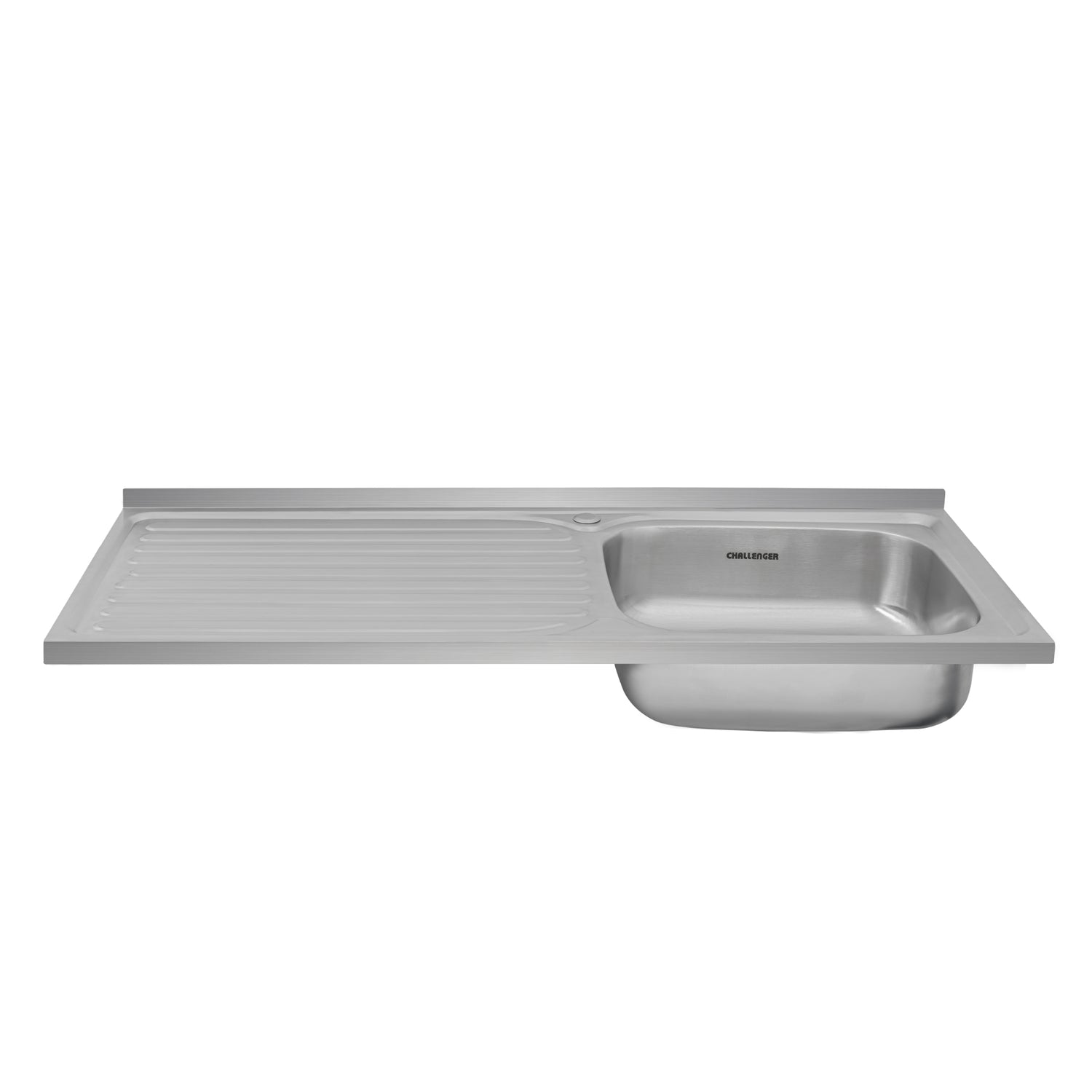 Mesón de Cocina Challenger Gris 120x50cm de Acero Inoxidable con Pozuelo Lado Derecho y sin Estufa