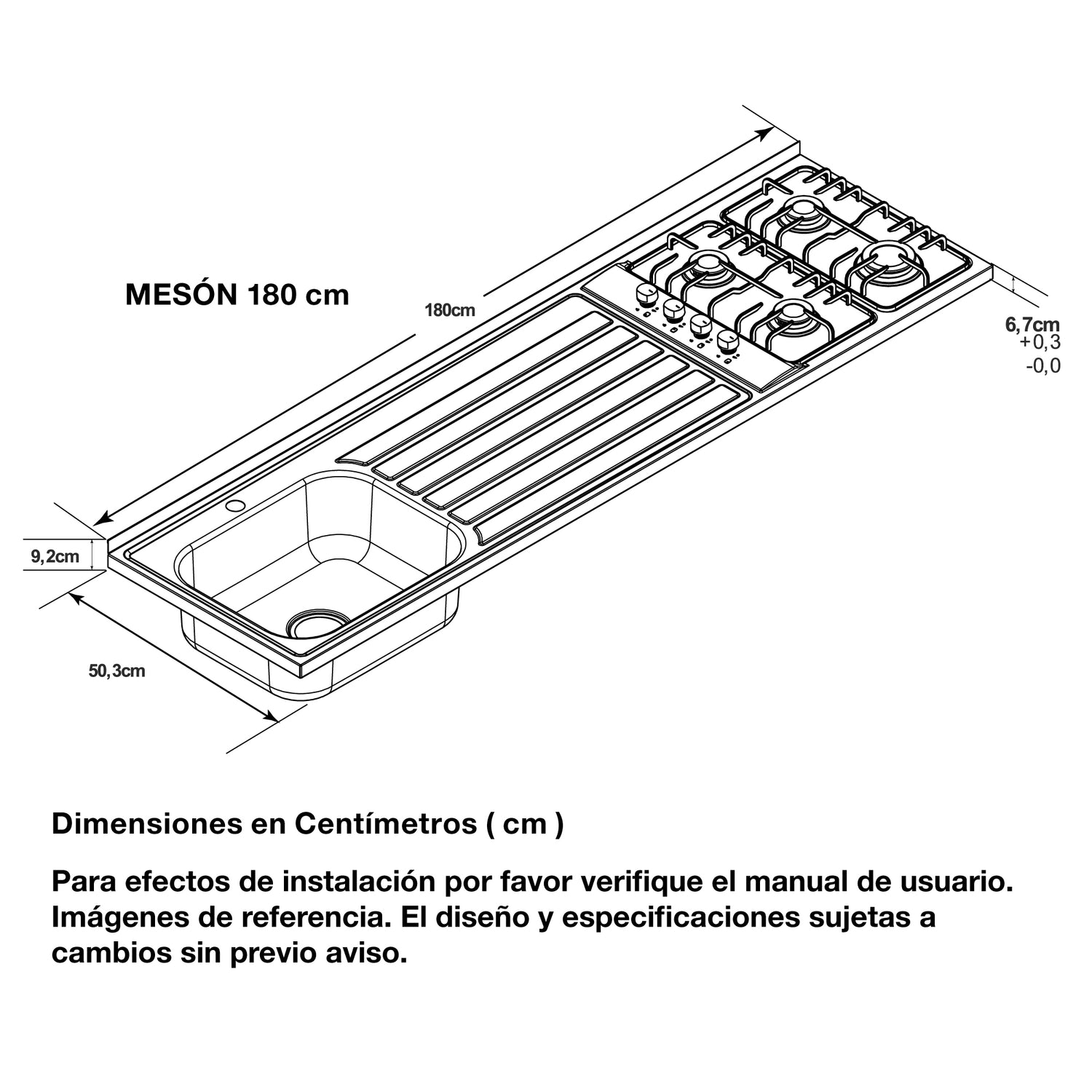 Mesón de Cocina Challenger Gris 180x50.3cm de Acero Inoxidable con Pozuelo Lado Izquierdo y con Estufa