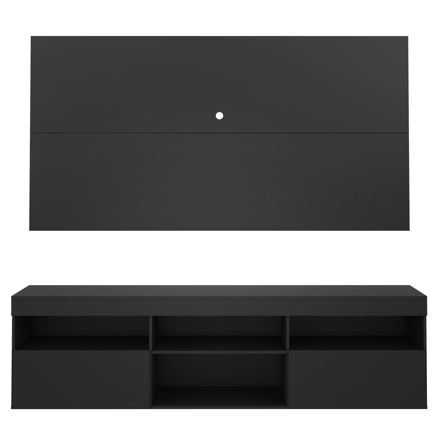 Centro de Entretenimiento Florida Negro 175x90cm Para TV Hasta 65" Pulgadas con Tres Comportimientos