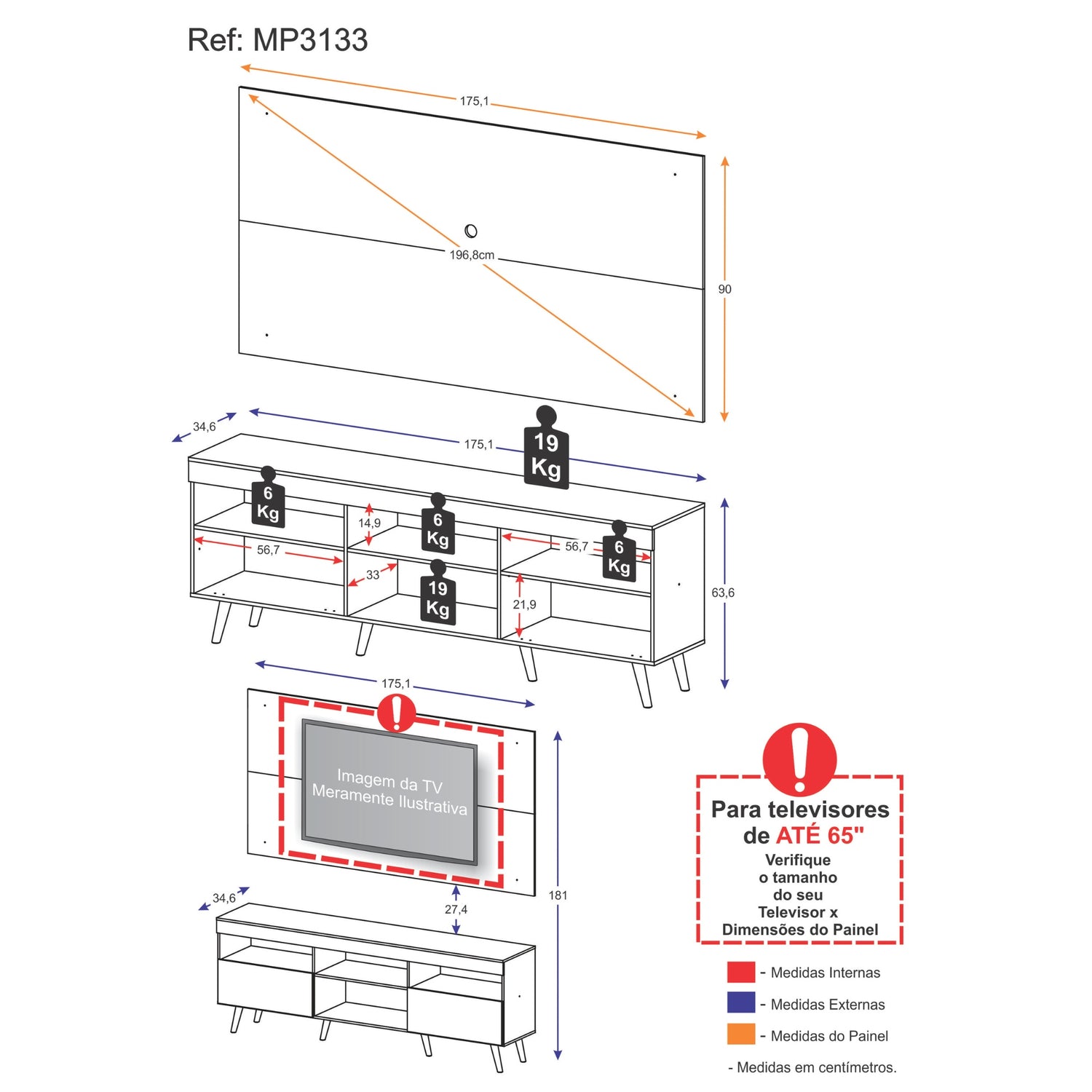 | Tamaño máximo de tv | HASTA 65 PULGADAS |