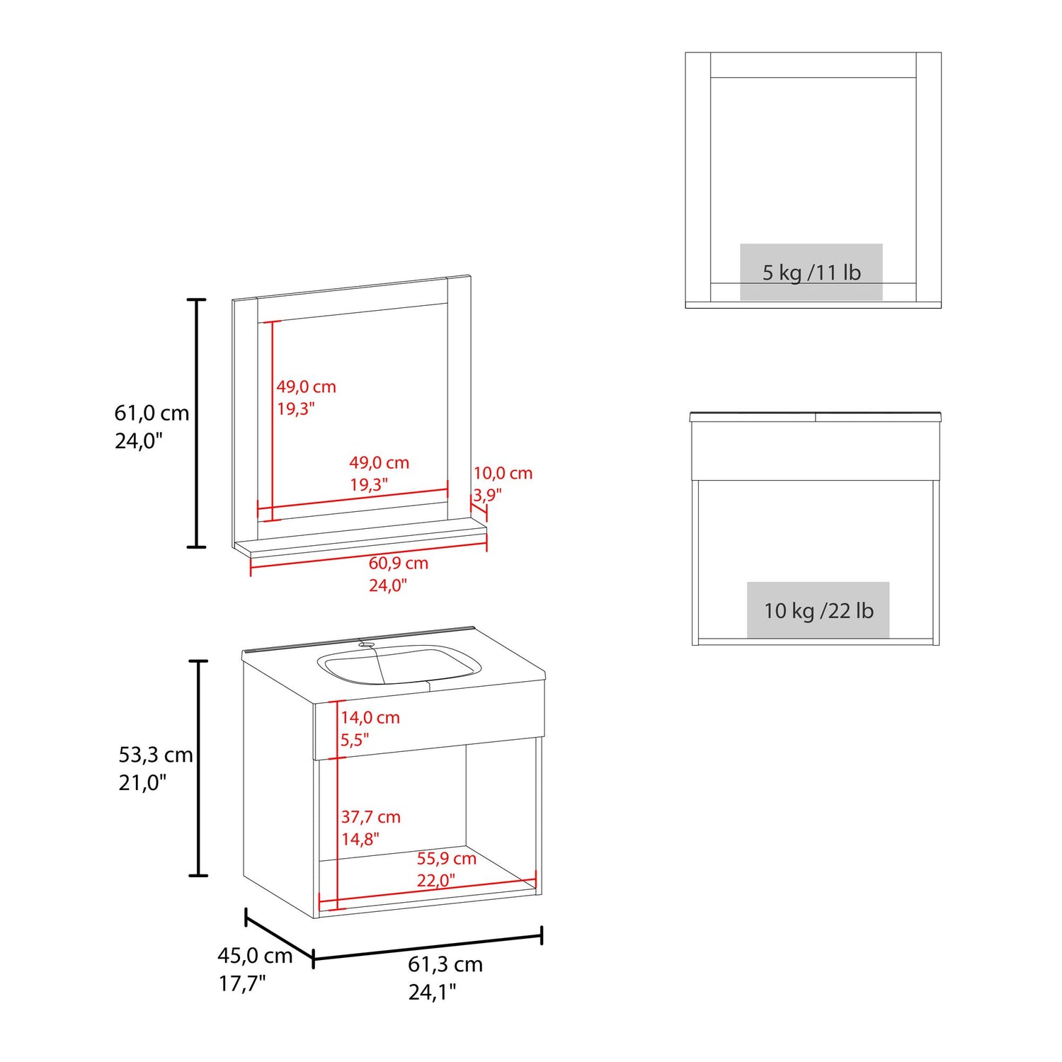 Set Mueble para Lavamanos con Espejo Flotante Blake Blanco 61.3x53.3cm Individual con Lavamanos