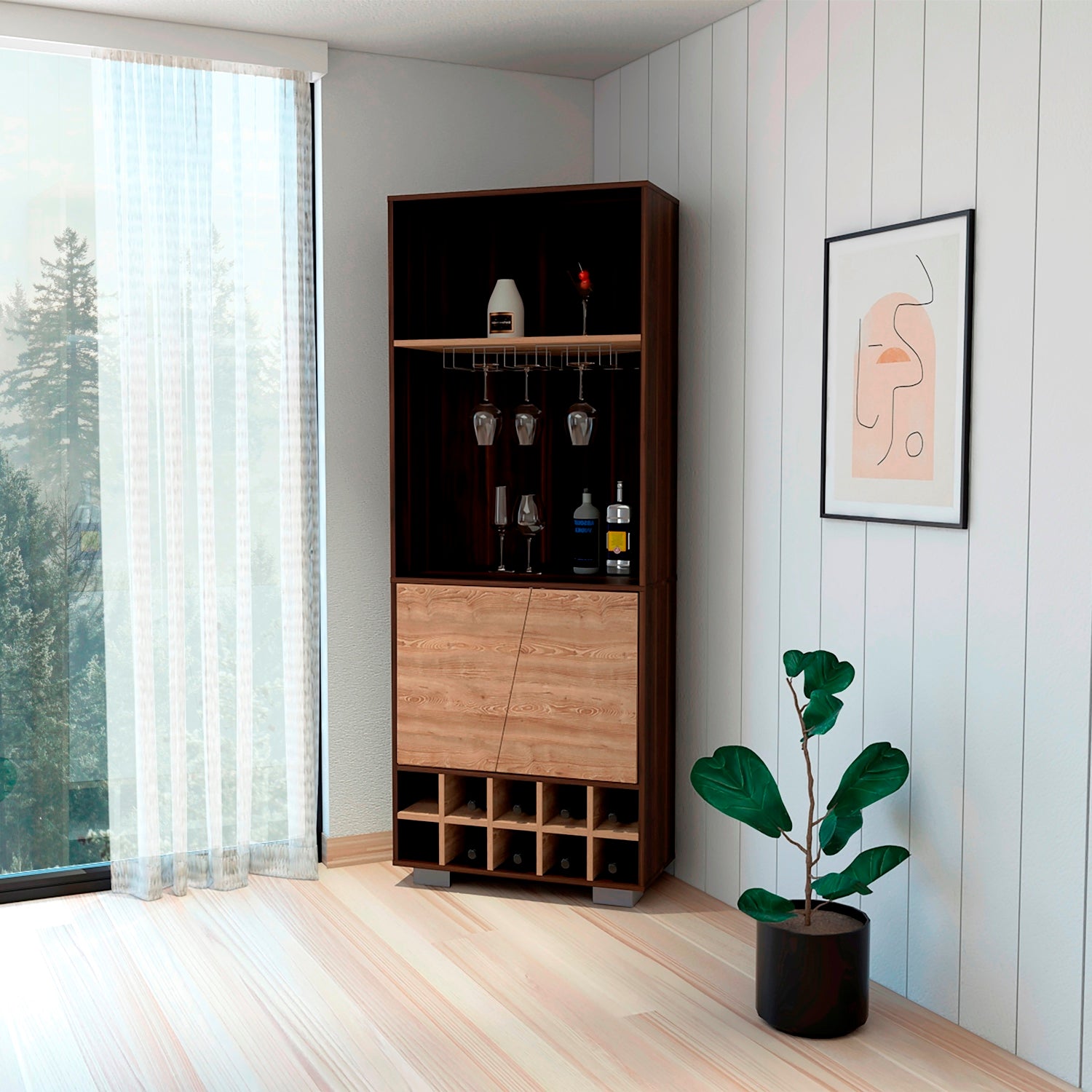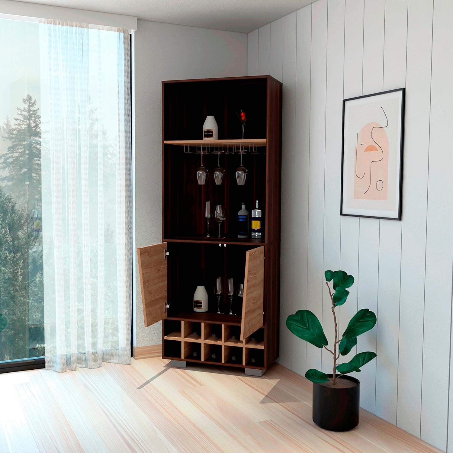 Bar Esquinero Fraktal Habano 65.8x180cm Moderno