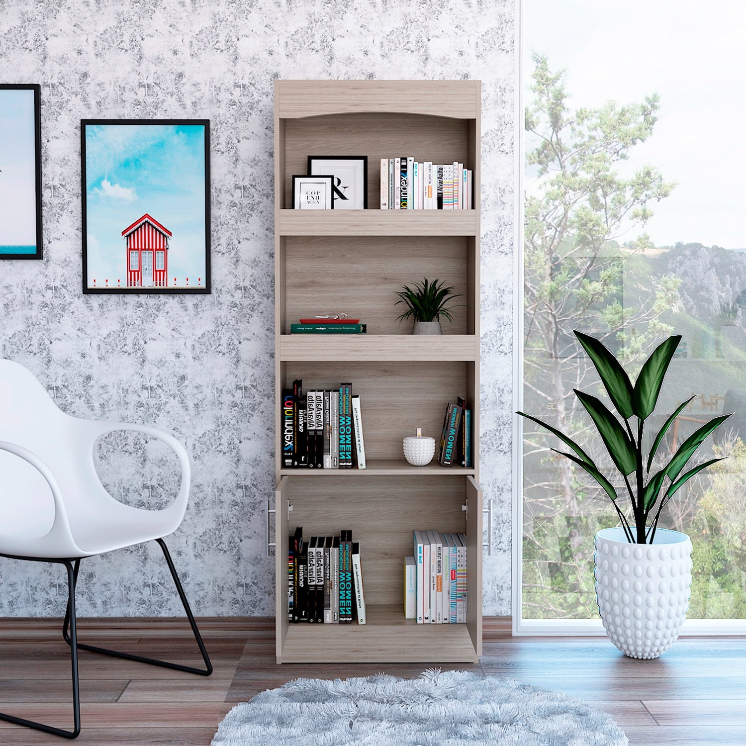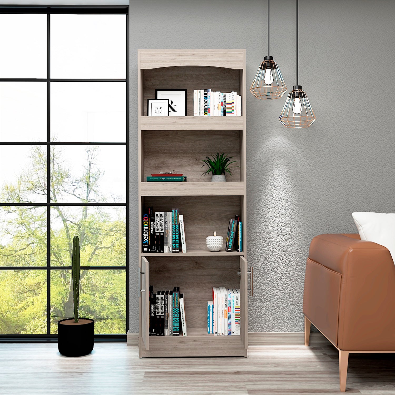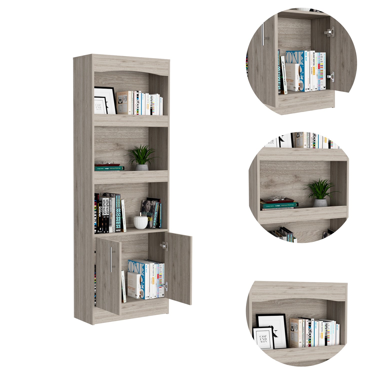 Biblioteca Simma Ceniza 63.2x180.6cm con Tres Entrepaños