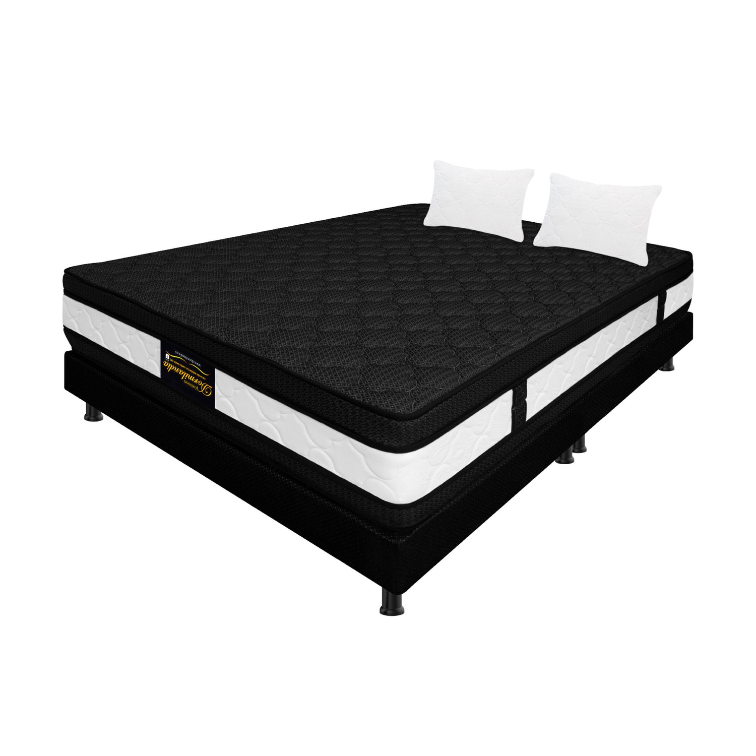 Combo Base Cama y Colchón Casata Blanco y Negro King 200 X 200 Cm Firmeza Medio Firme Doble Faz