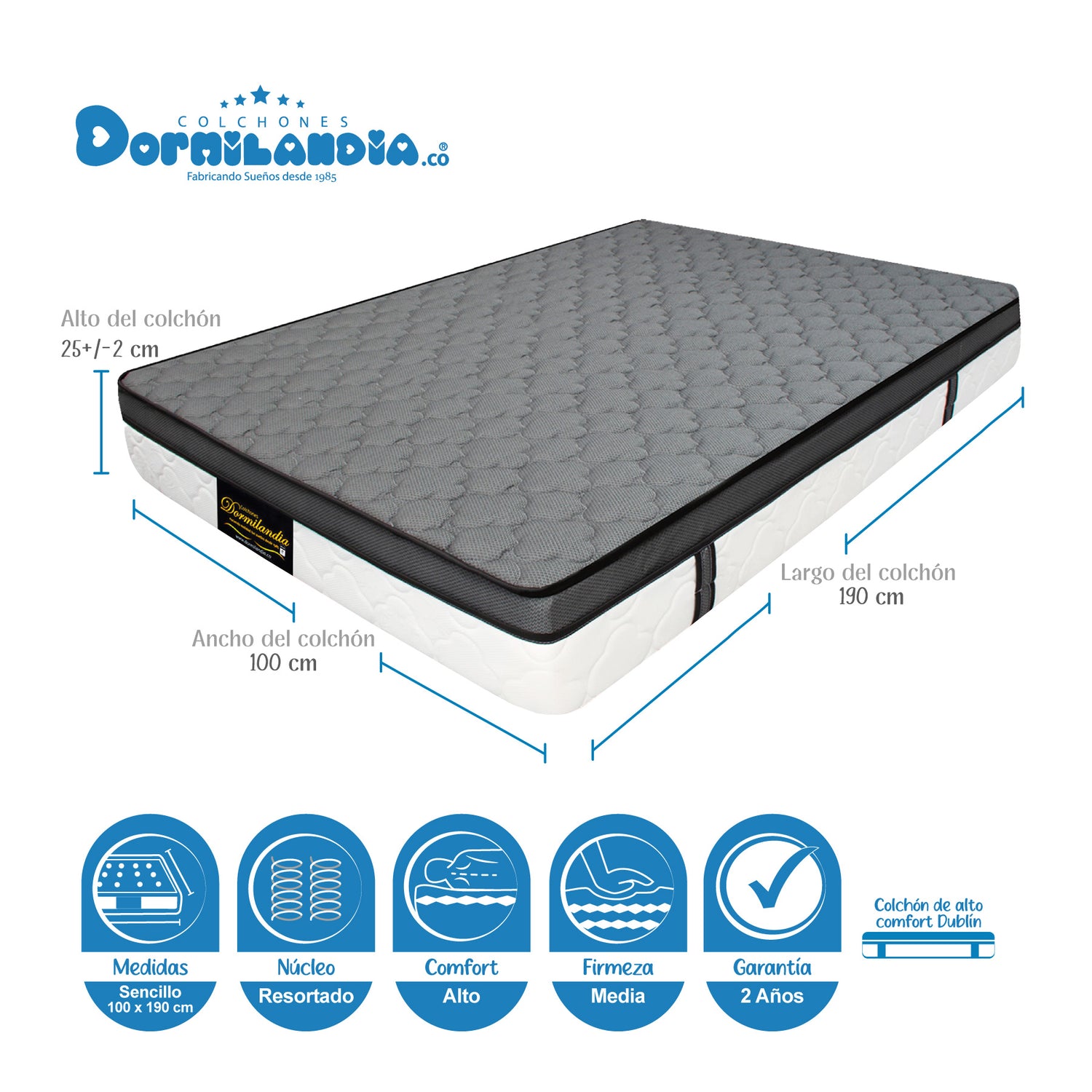 Combo Base Cama y Colchón Dublín Gris Sencillo 100 X 190 Cm Firmeza Medio